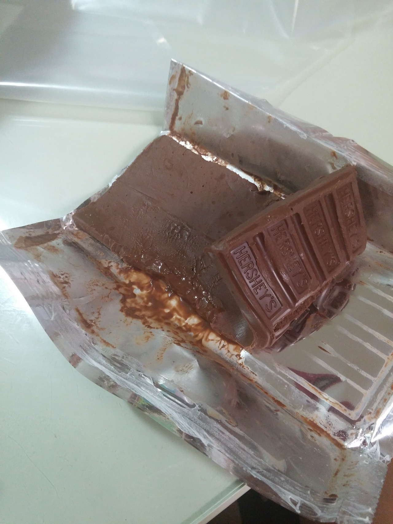 아이의 손에 온도는 상당하다 슈퍼에서부터 딸이 초코렛을 들고왔는데 녹아서 휘어질정도이다