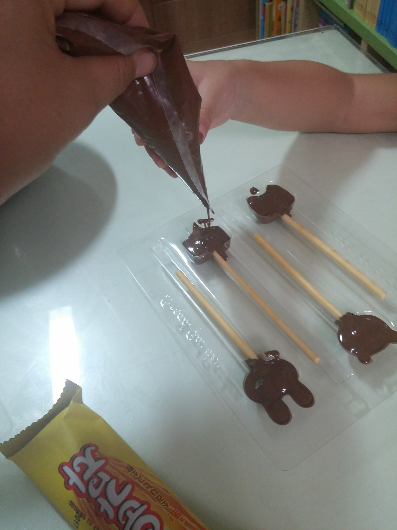 초코렛을 짤주머니에 넣고 뜨거운물에 중탕