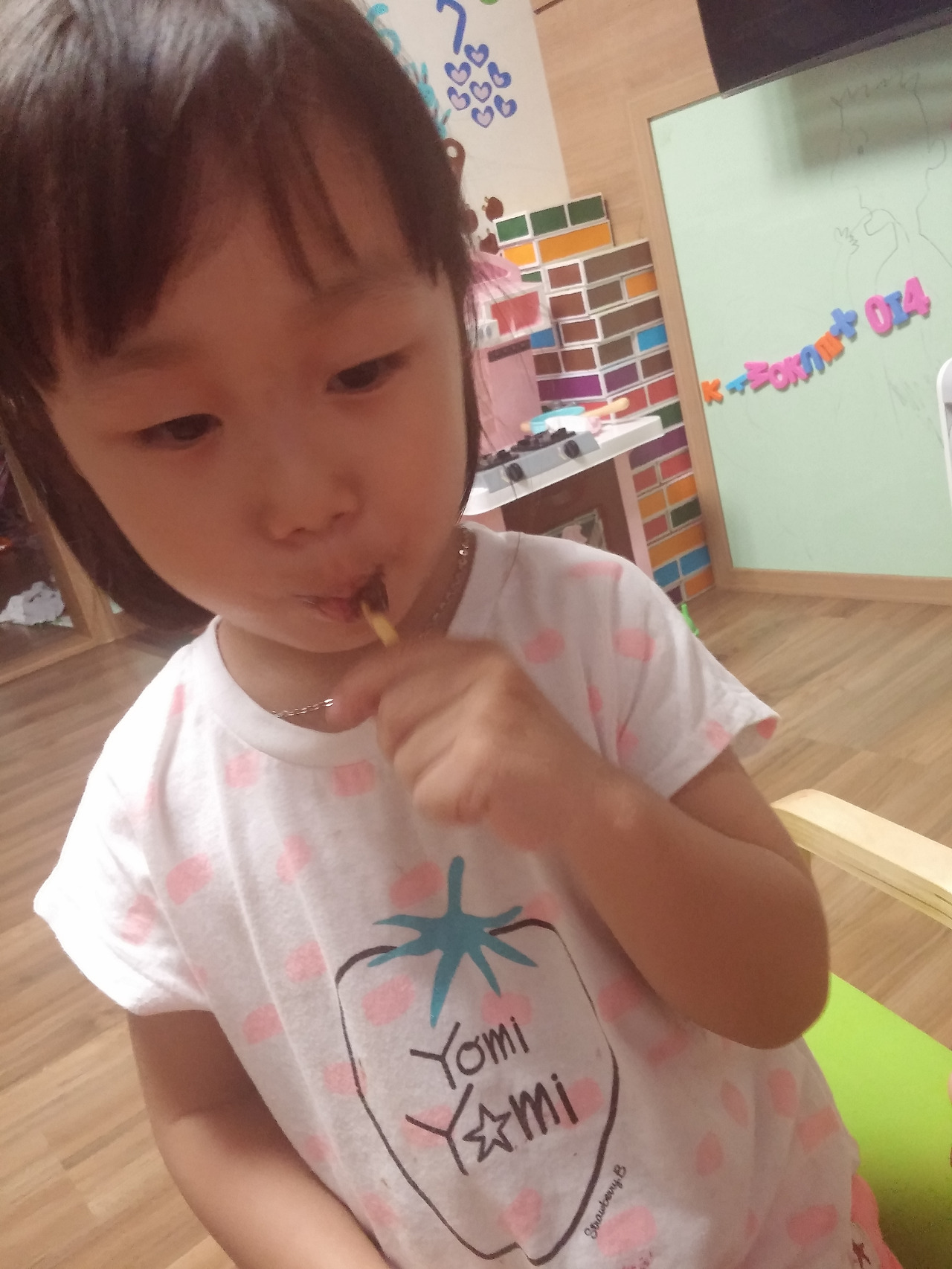 아이는 물처럼 녹은 초코렛이 마냥 신기하고 좋은지 환호성과 감탄사를 연발한다