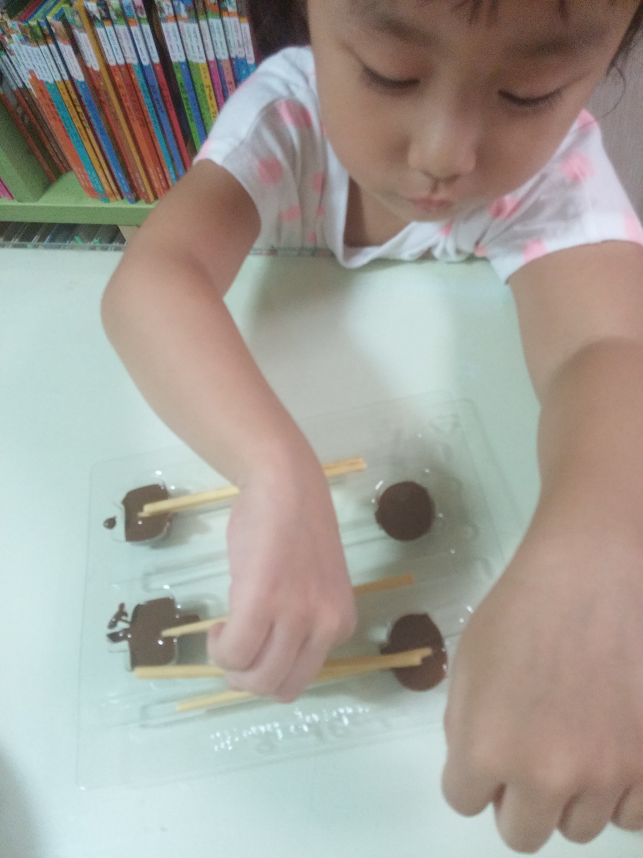 딱딱한 고체의 초코렛이 녹아 액체가 되었다 다시 딱딱해지는 과정을 보며 과학적인 경험과 고칼로리 섭취를 동시에 한 알찬 놀이였다