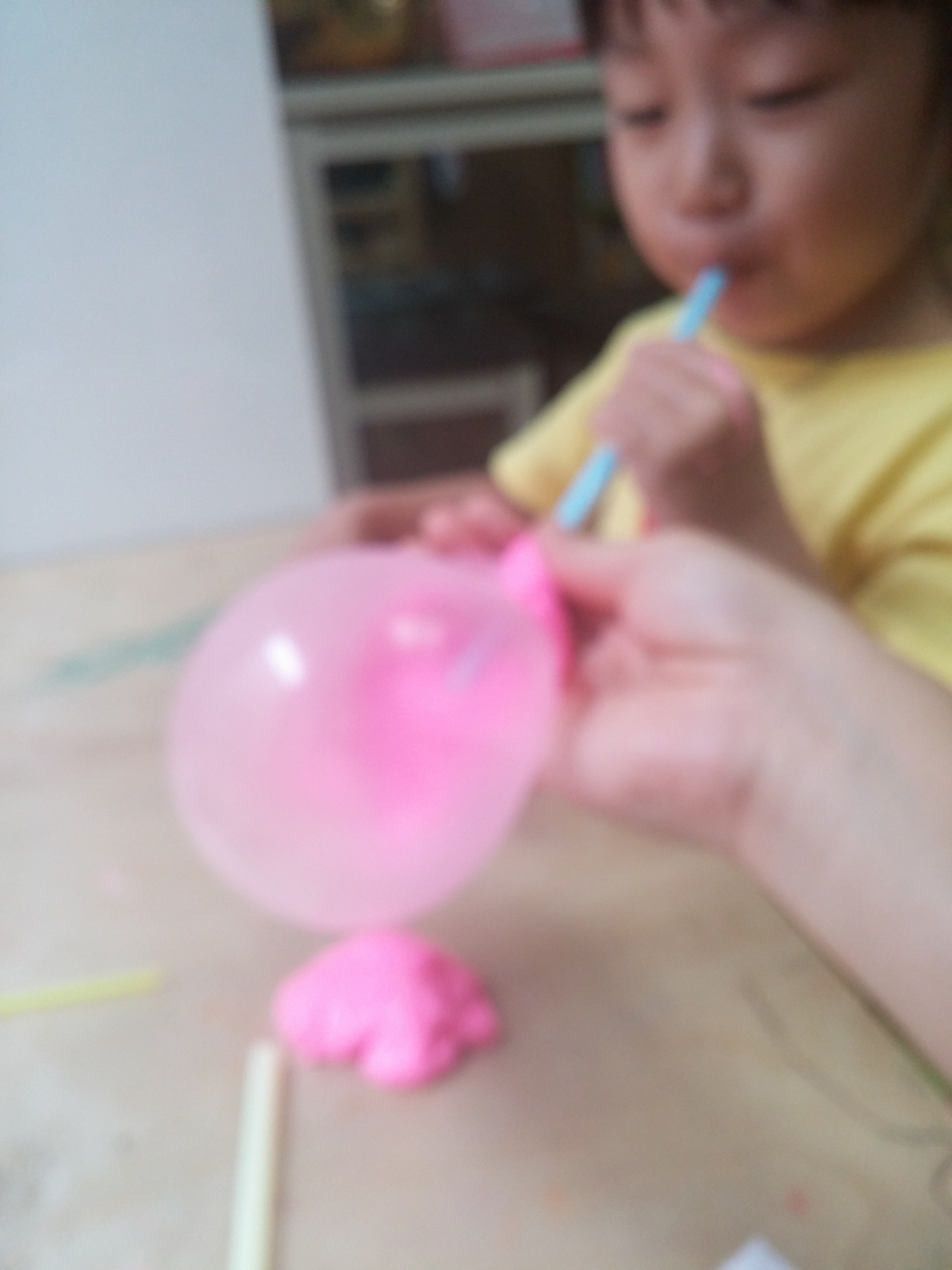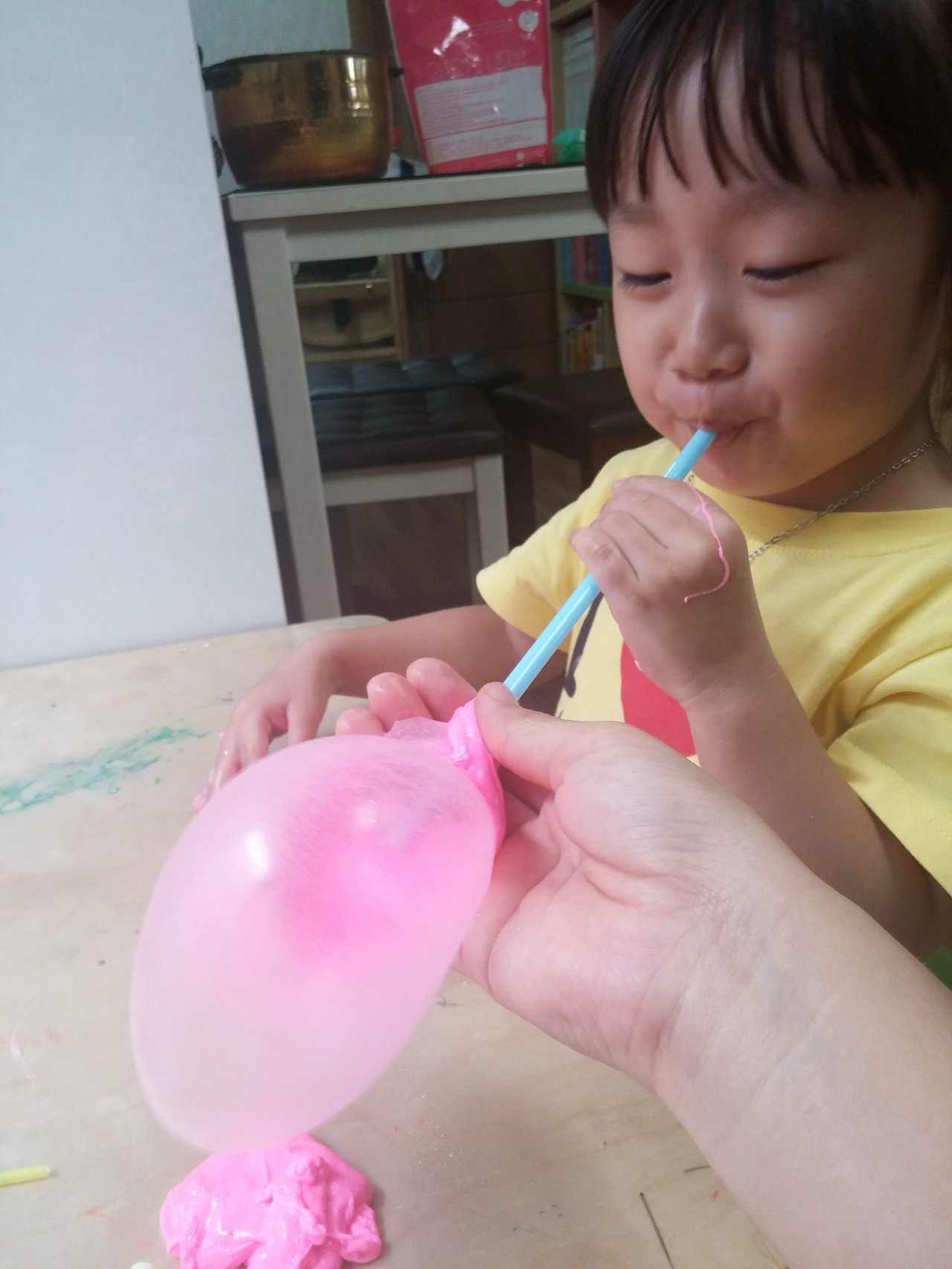 아이는 단단해진 액체괴물을 더 이상 가지고 놀지않는다