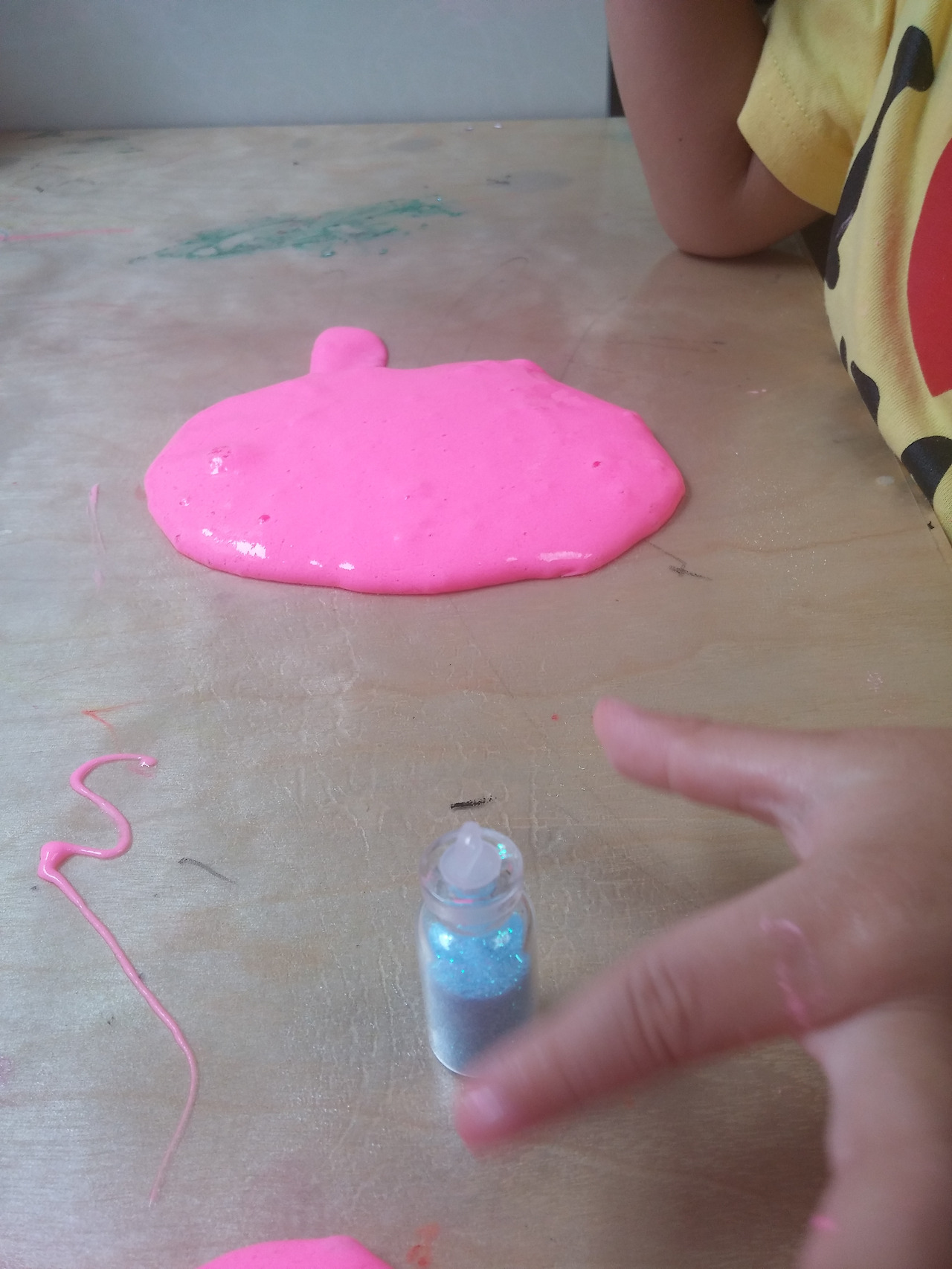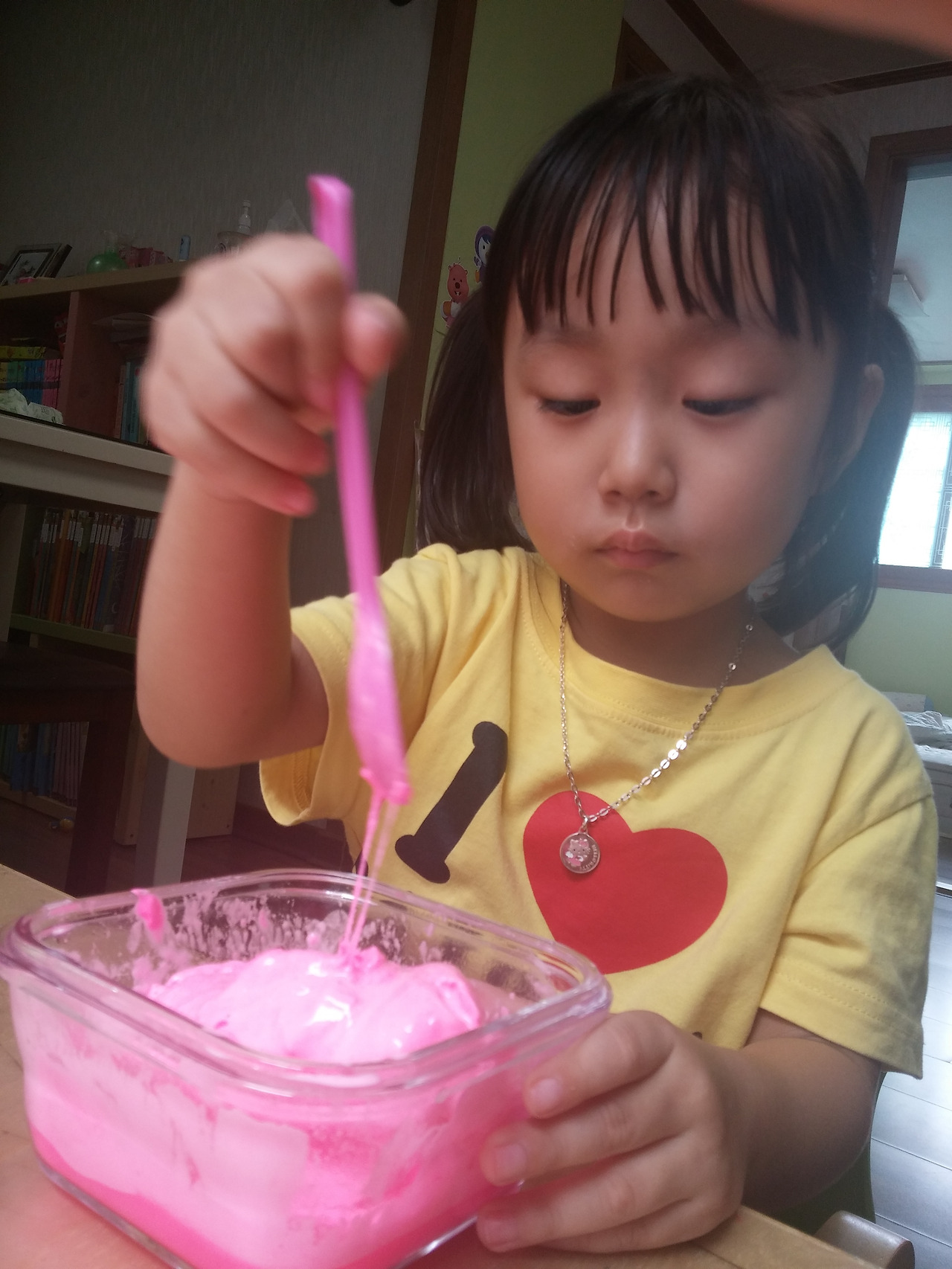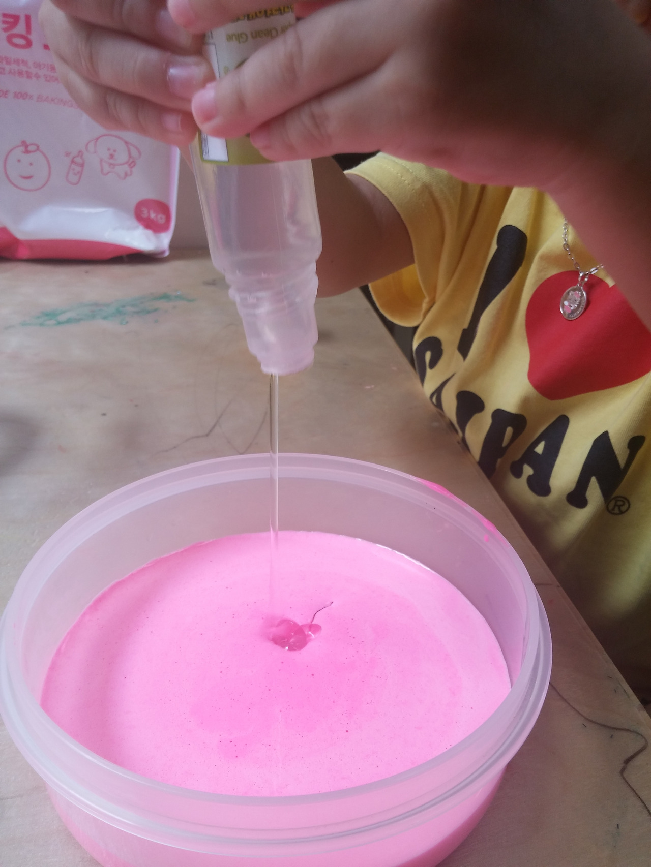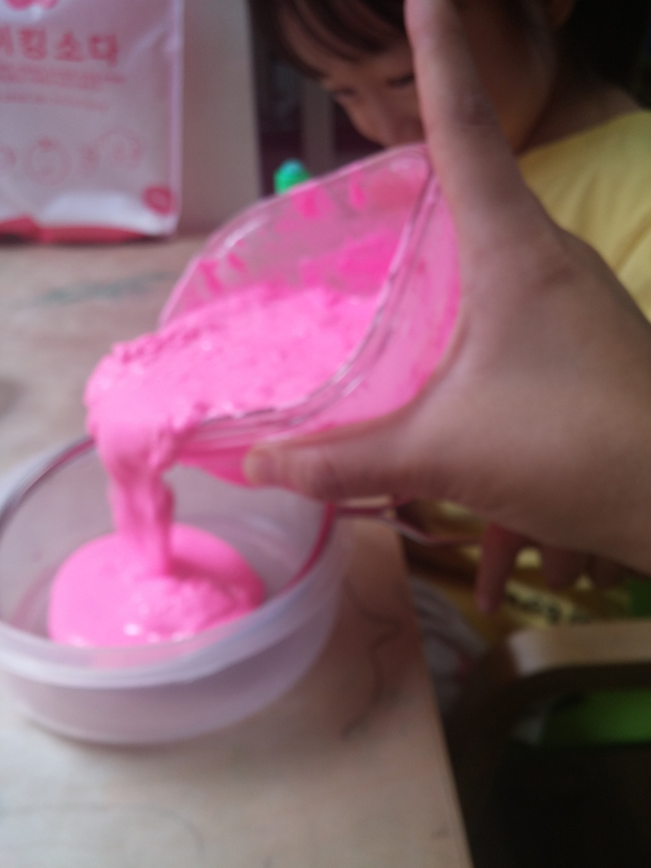 반짝이 가루도 넣어보았는데 분홍 액체 괴물이라