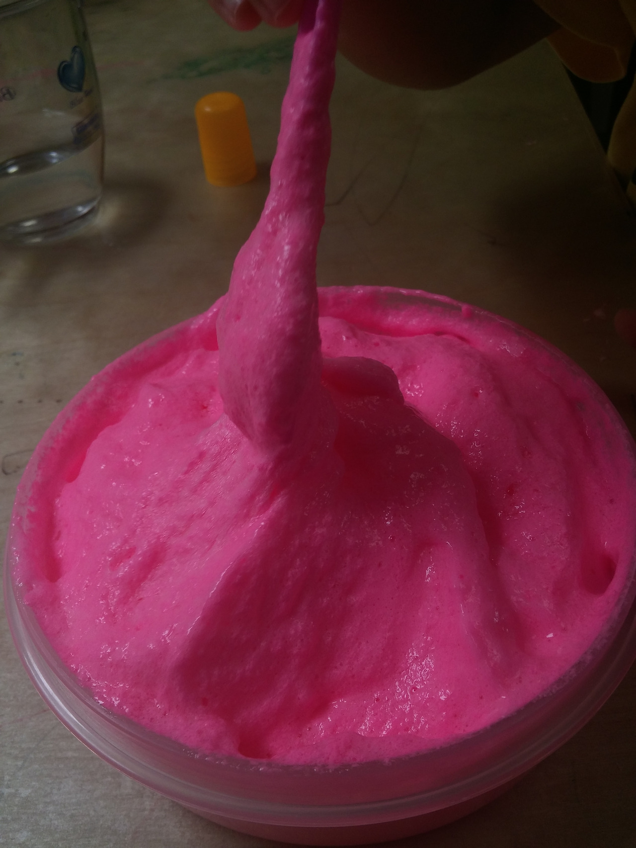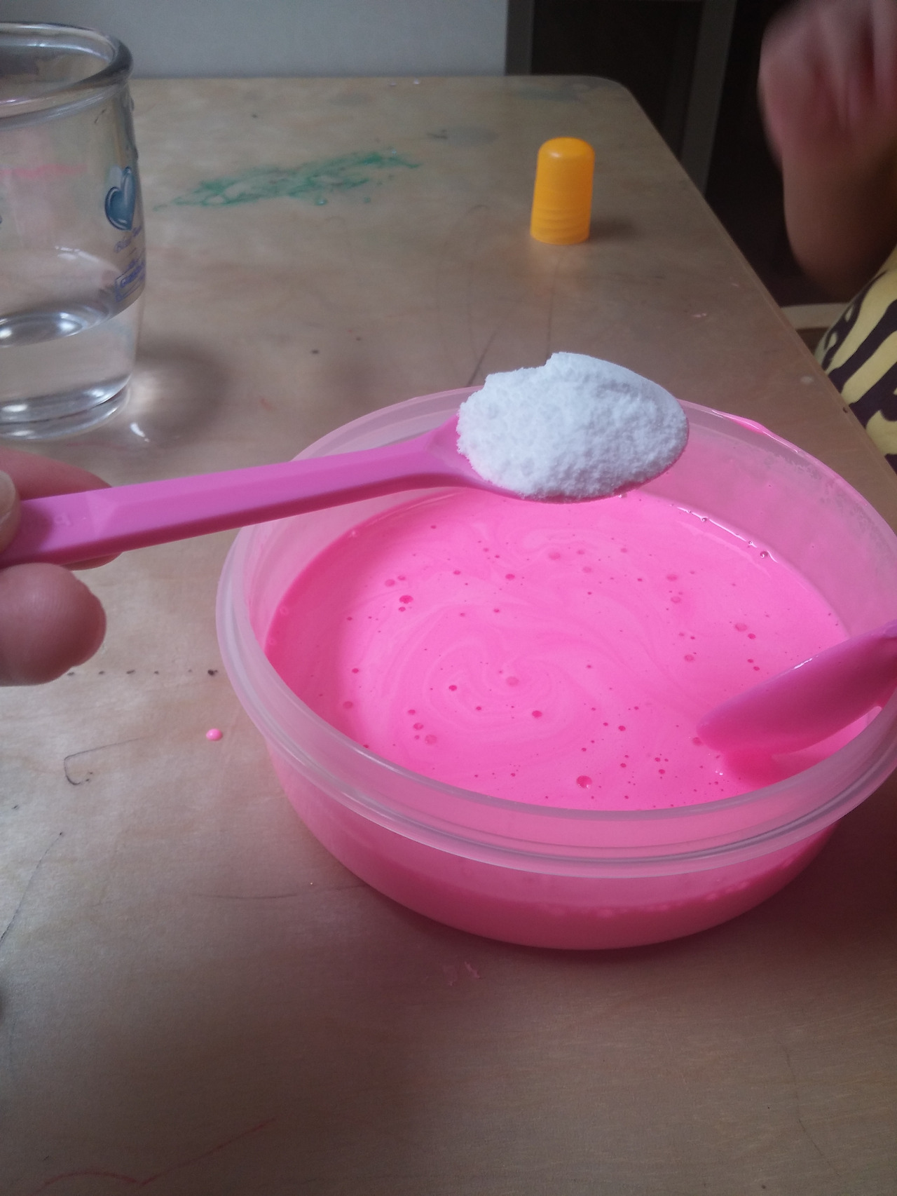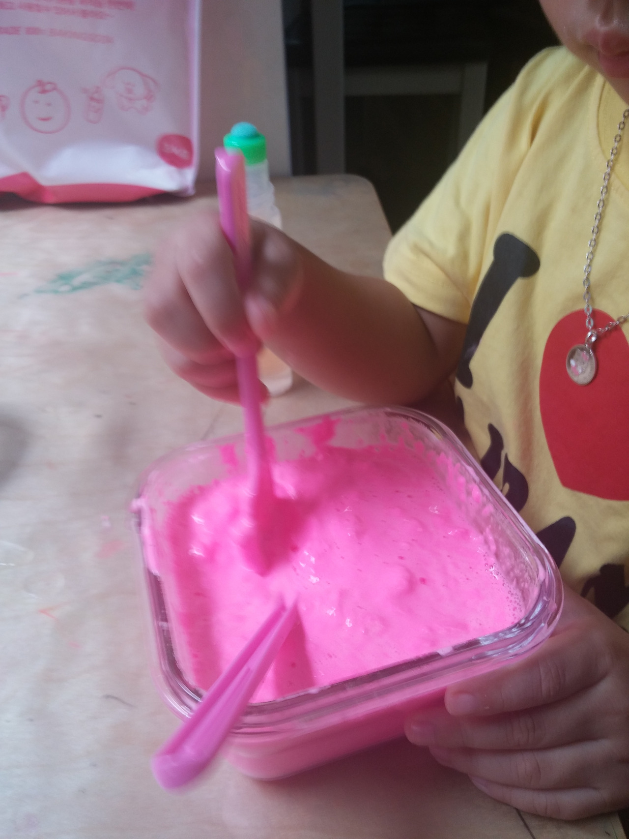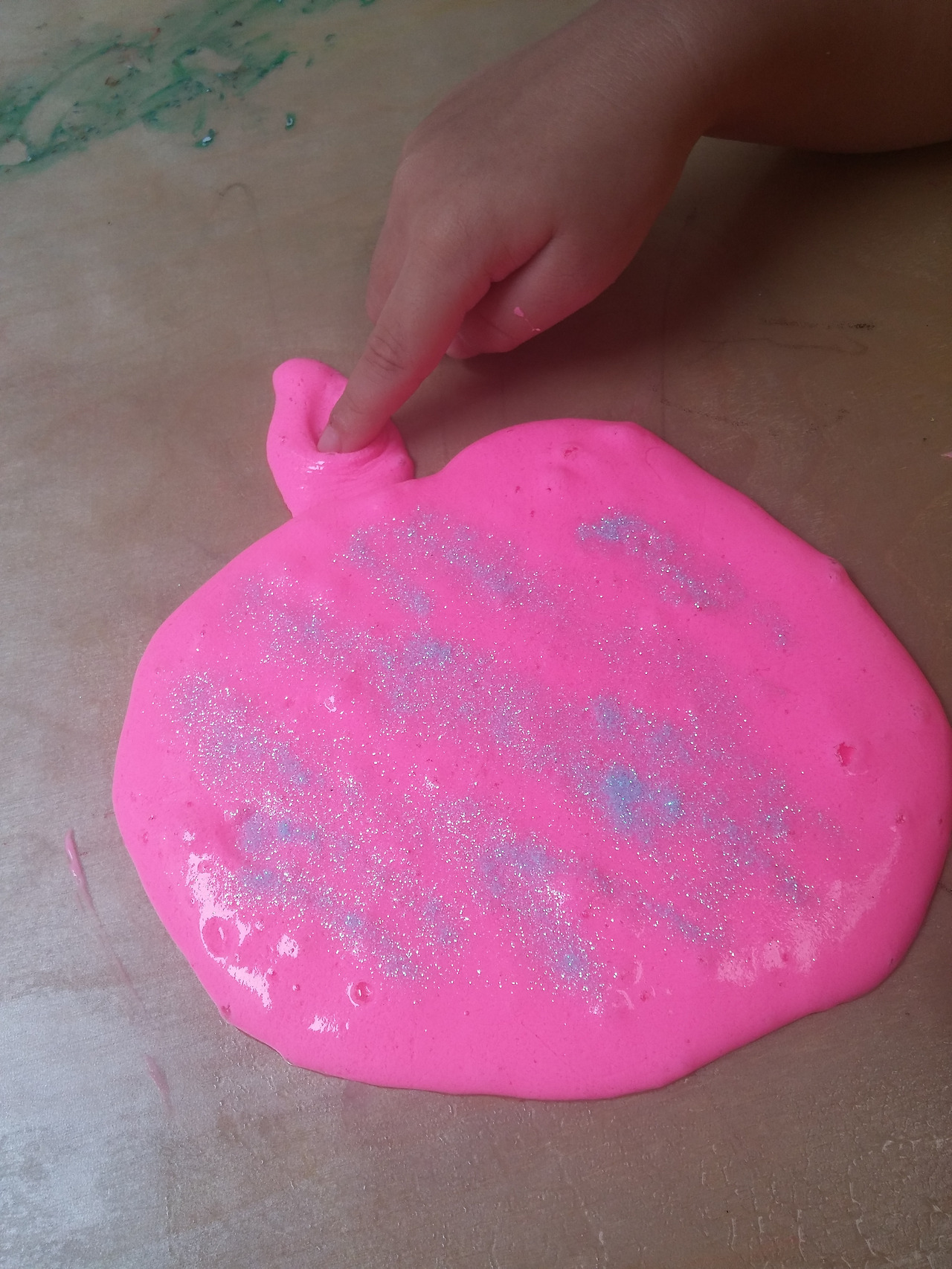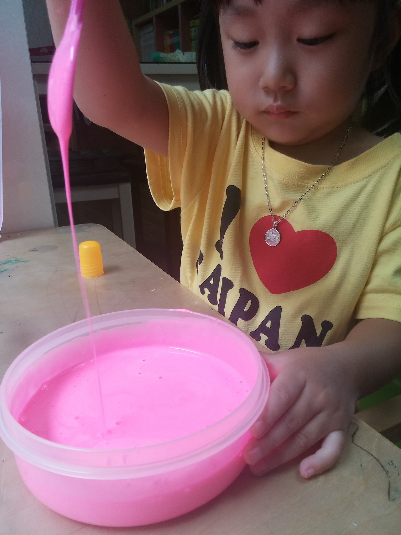 반짝이 가루도 넣어보았는데 분홍 액체 괴물이라