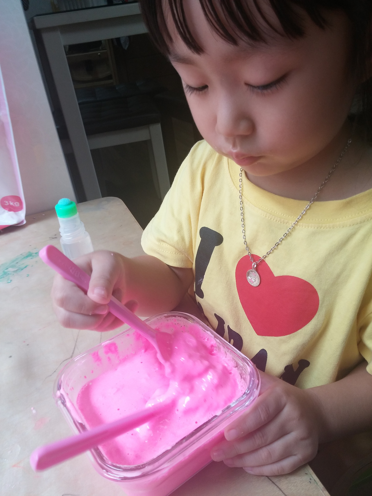 너무너무너무 속상해하는 아이에게 나중 우리가 만들자라고 했는데 어제부터 액체괴물 만들자고
