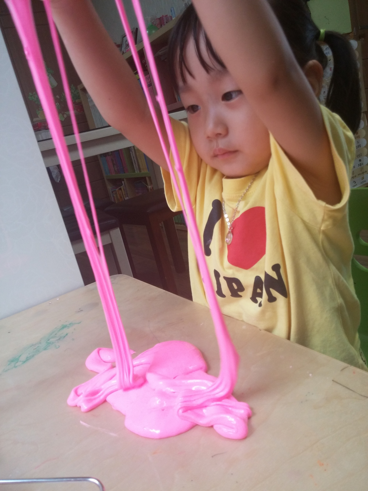 그저께 문구점에서 아이가 액체괴물을 사 달라고 해 하나 사 주었다