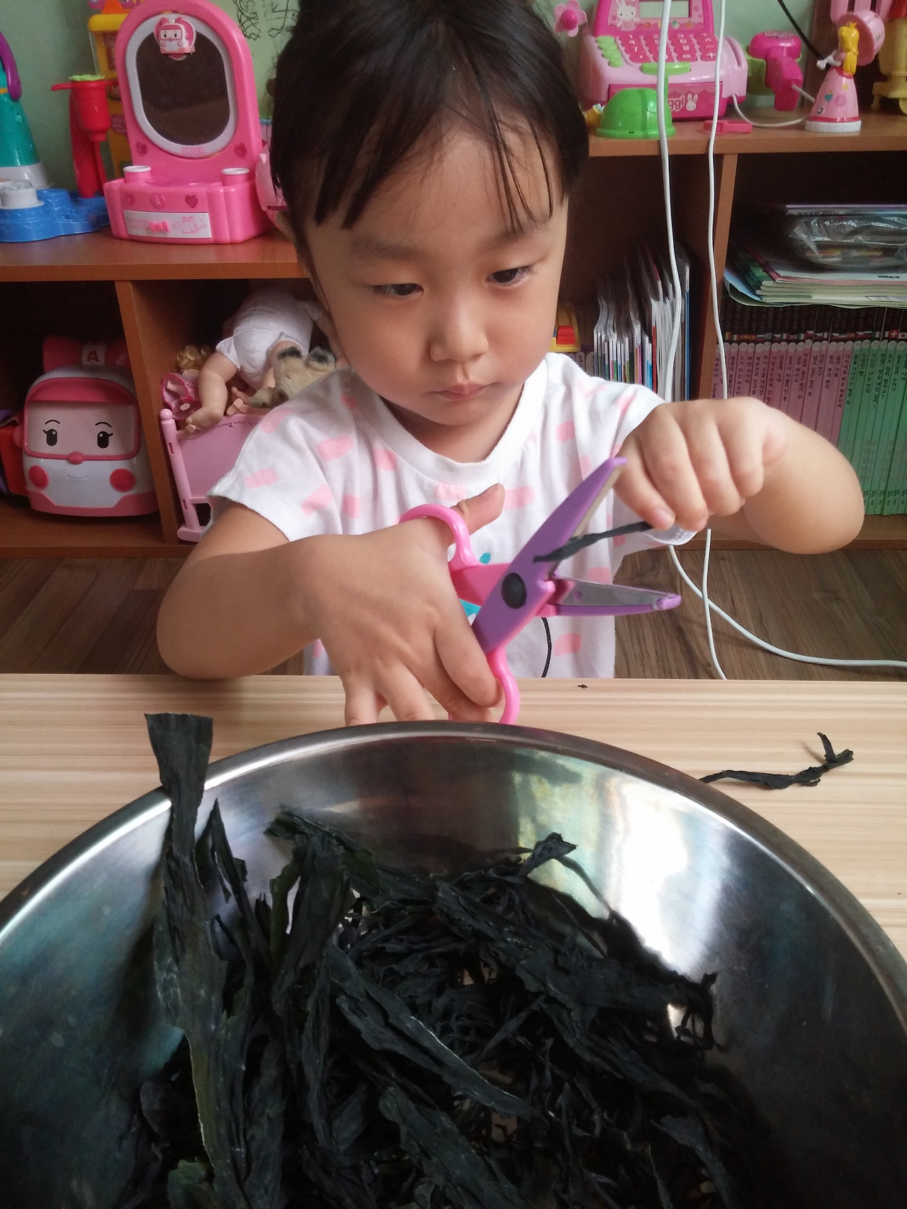 가위로 미역도 잘라보며 탐색
