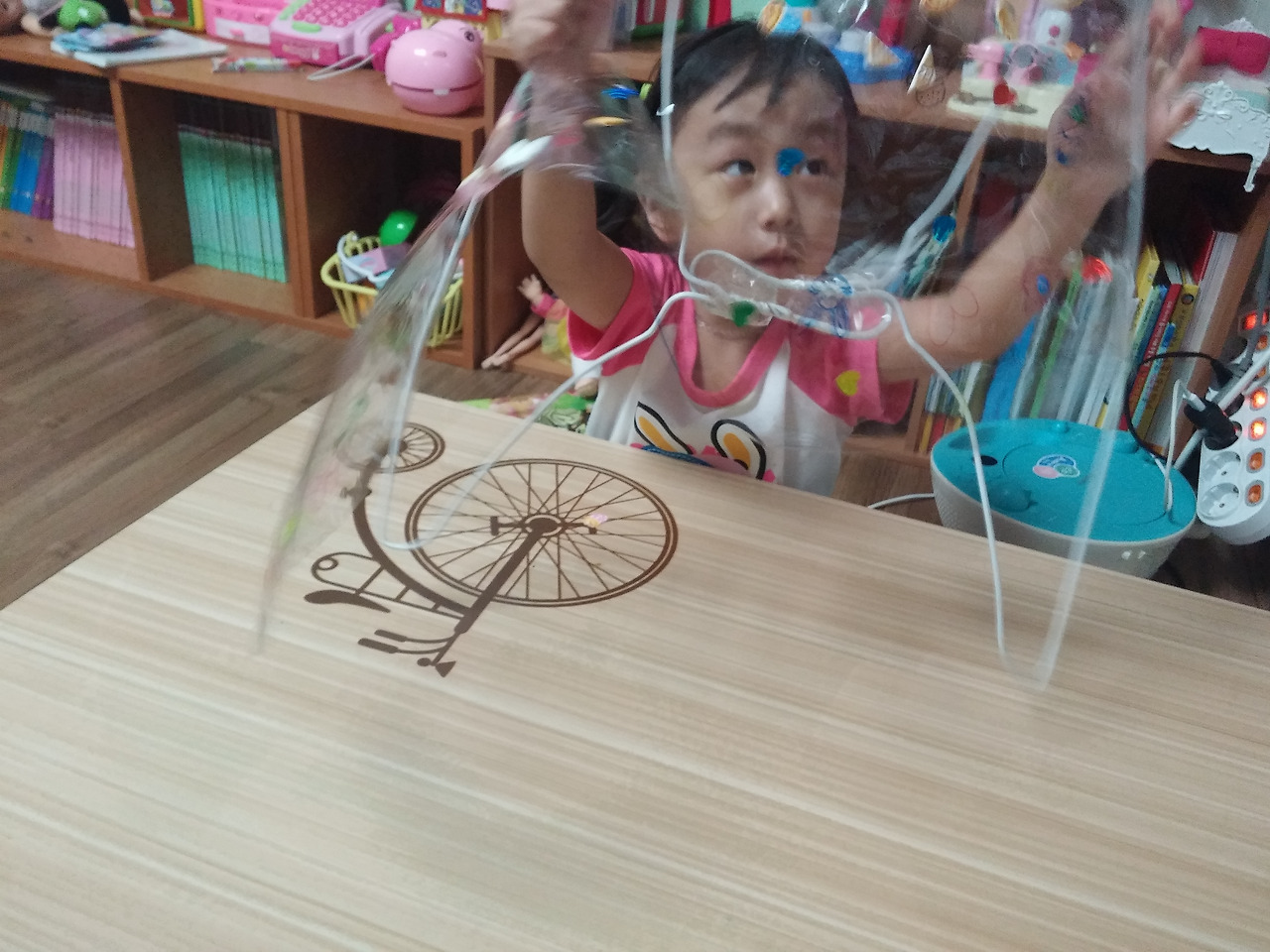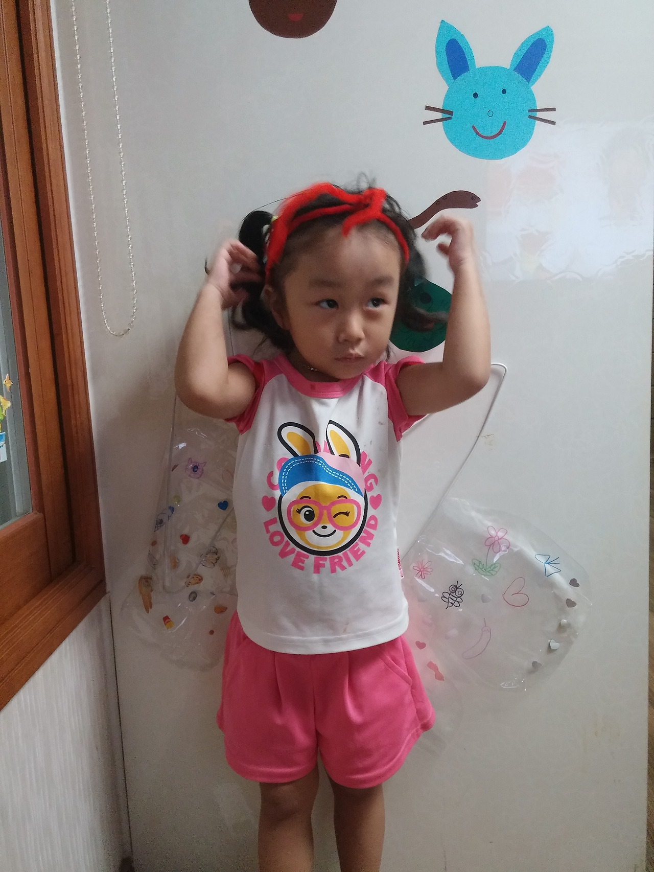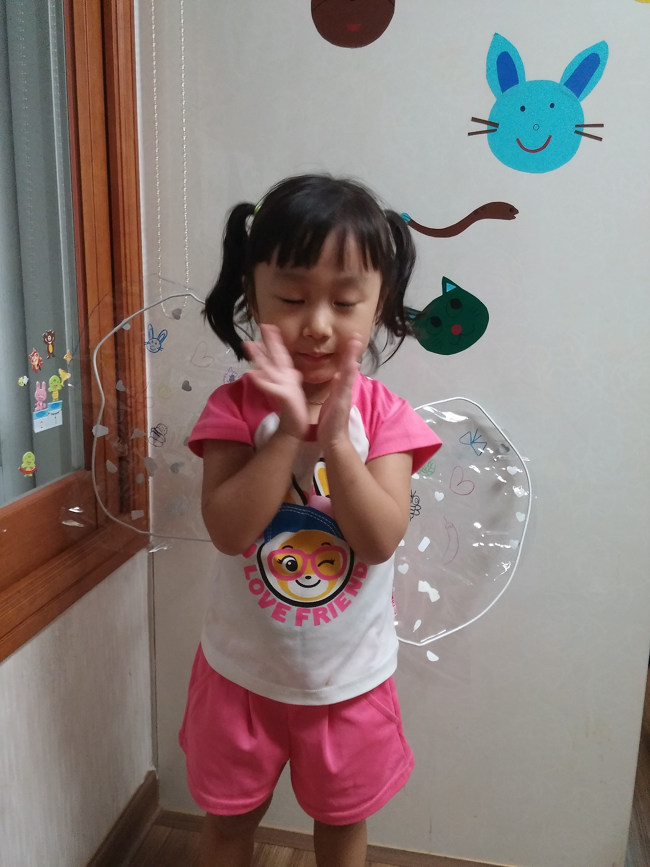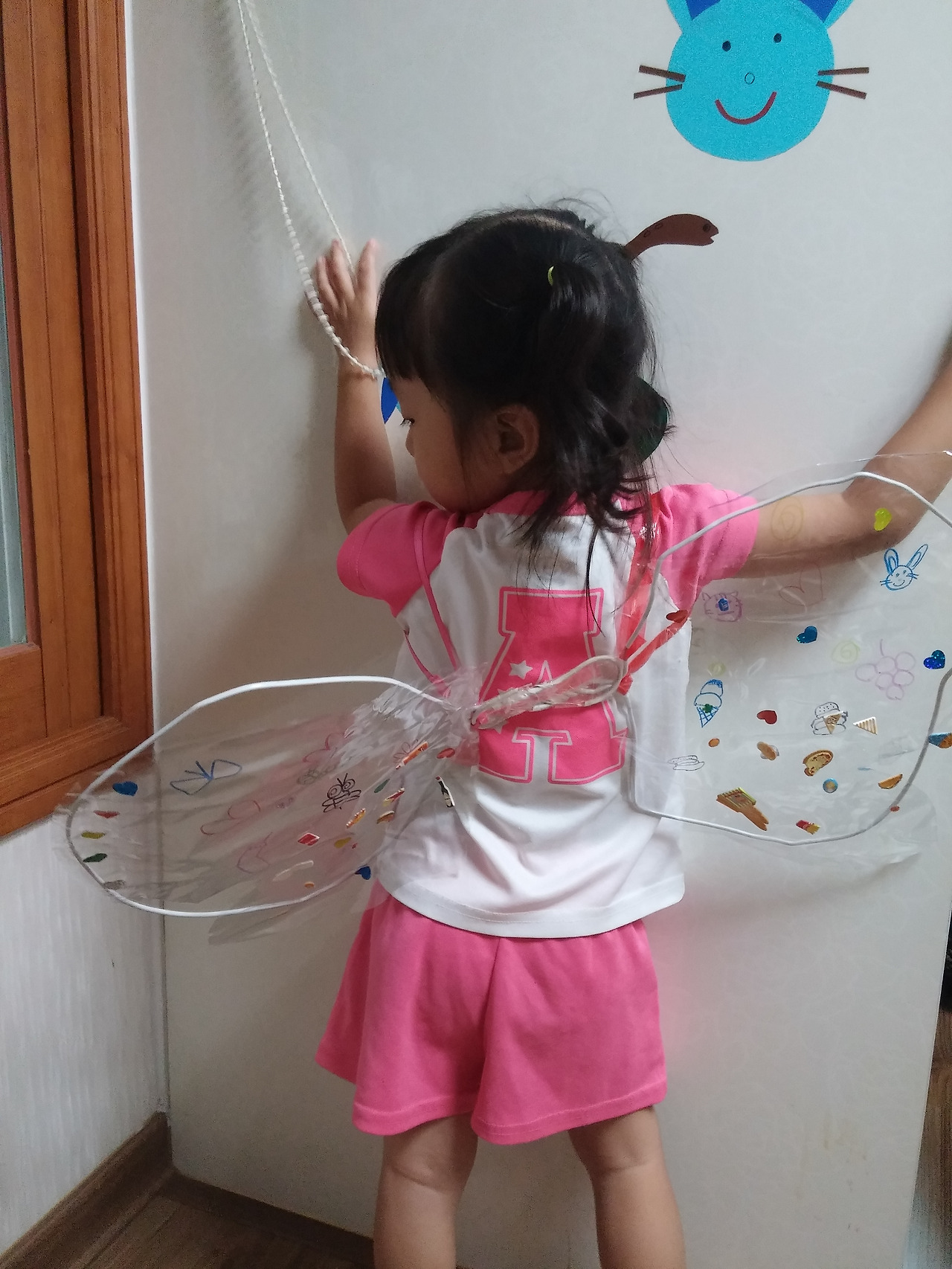 딸 아이는 아빠가 만든 날개 모양이 더 마음에 든다며 아빠의 날개를 선택했다