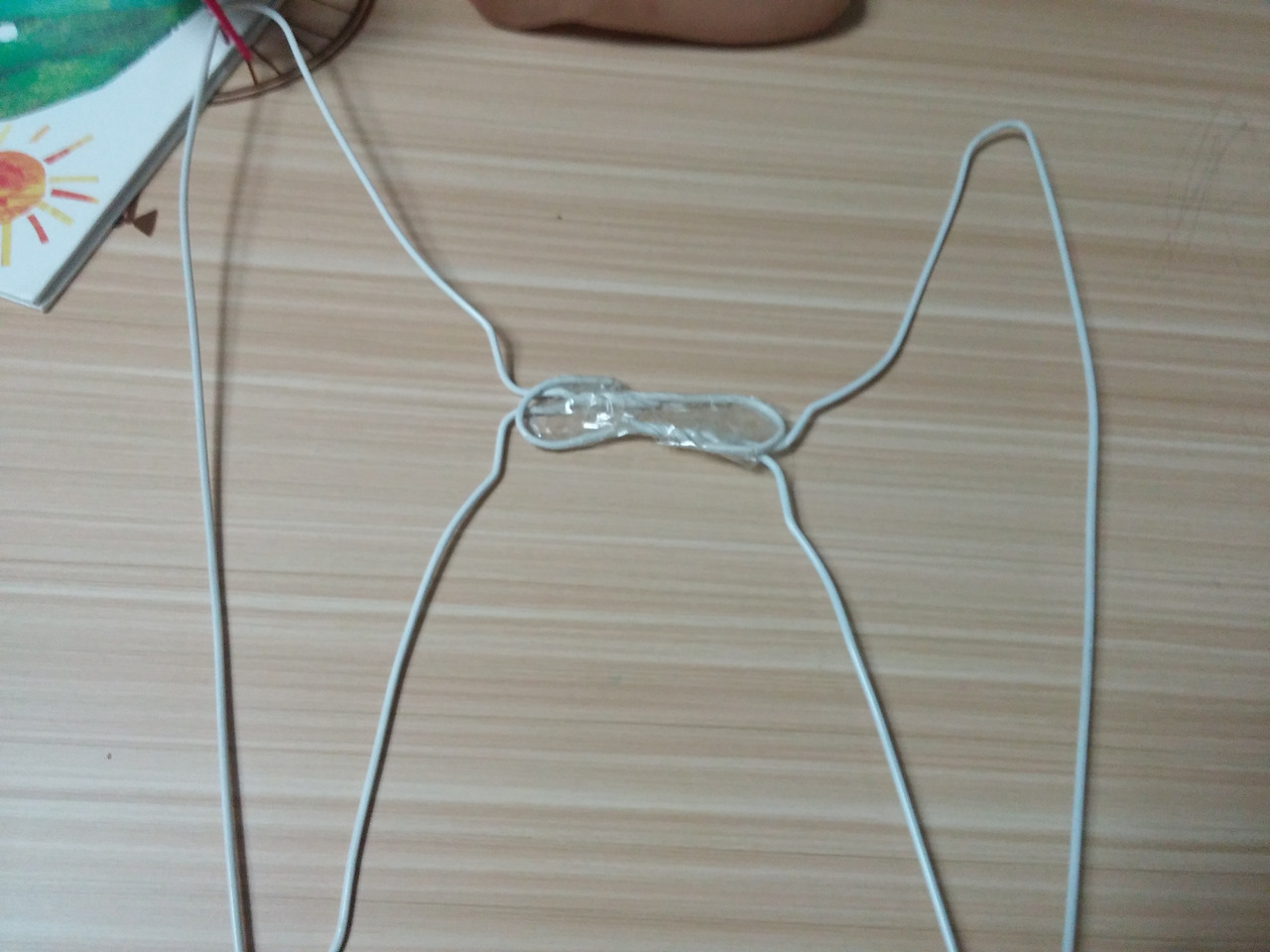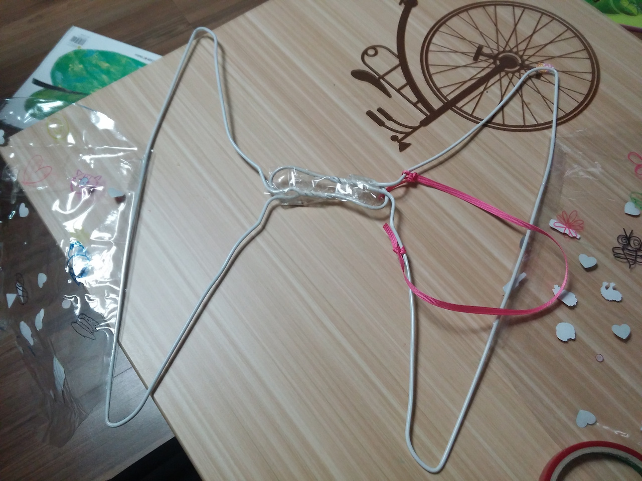 옷걸이 끝 부분에 날개를 붙이고 끈을 달아주면