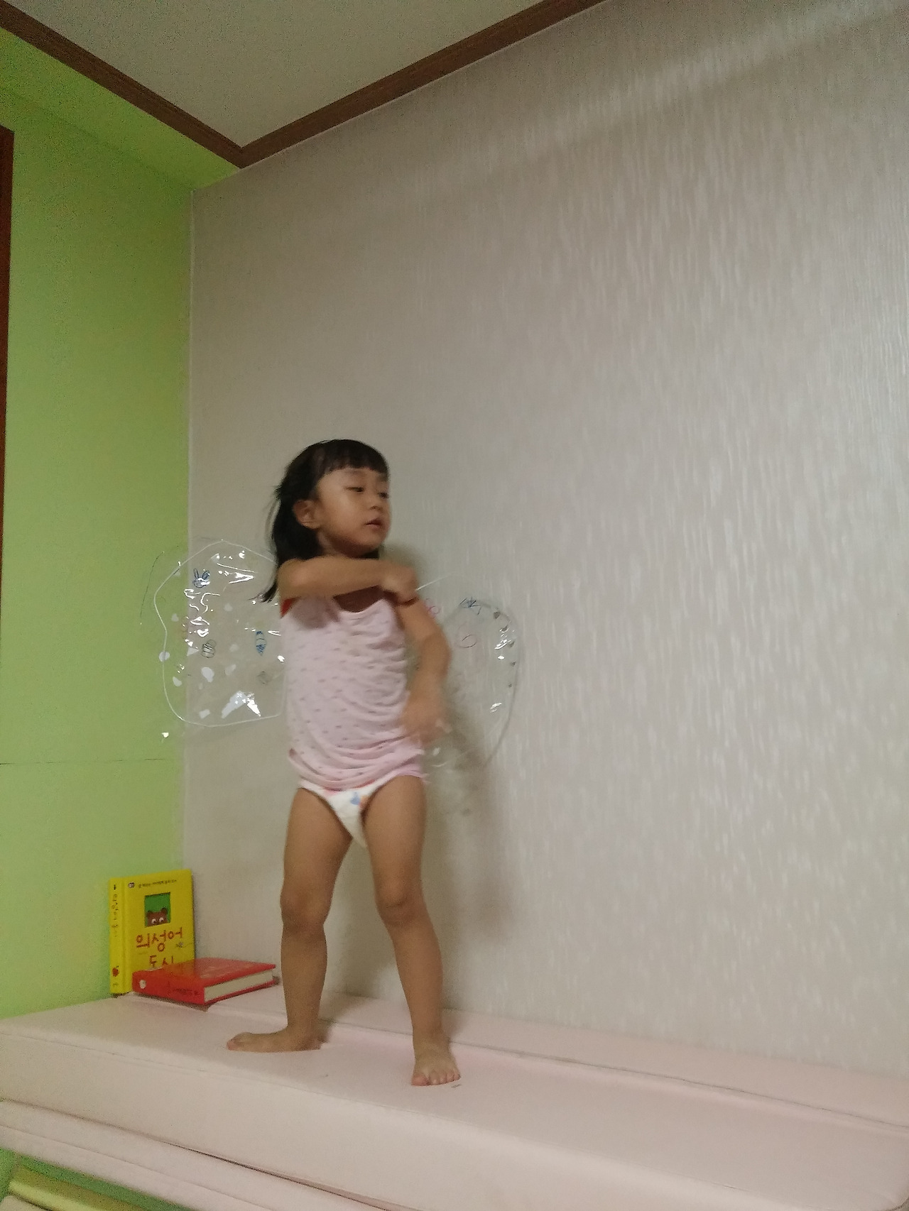 딸 아이는 자기 전 까지 날개를 매고 온 집을 날아 다녔다
