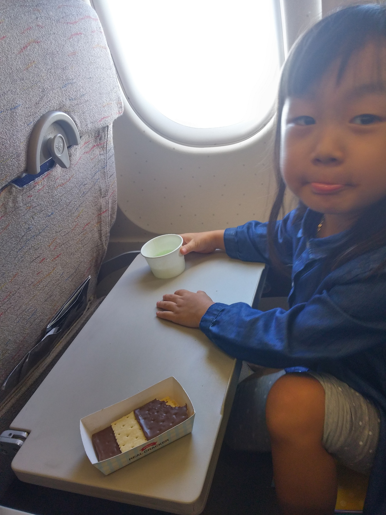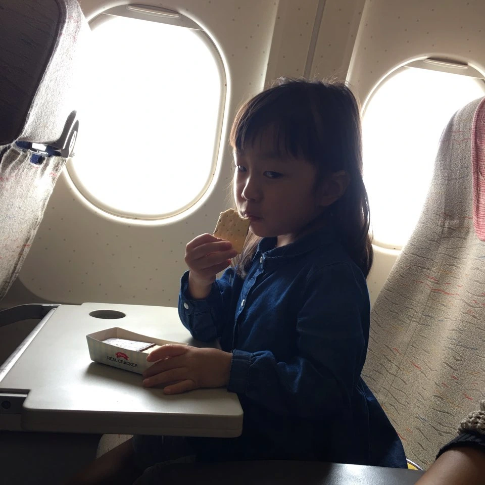 이륙하기 전에 창밖의 풍경을 즐기며 언제 비행기가 언제 뜨냐고 묻더니 이륙 하자마자 앞에 테이블을 스스로 내리고 신발과