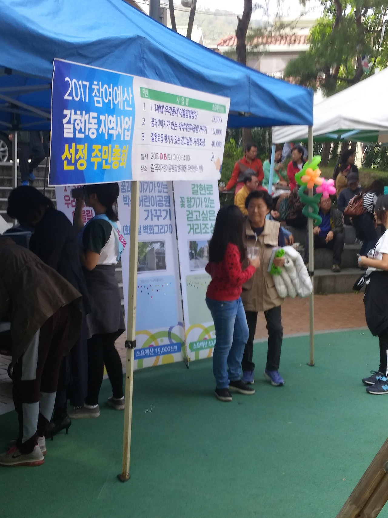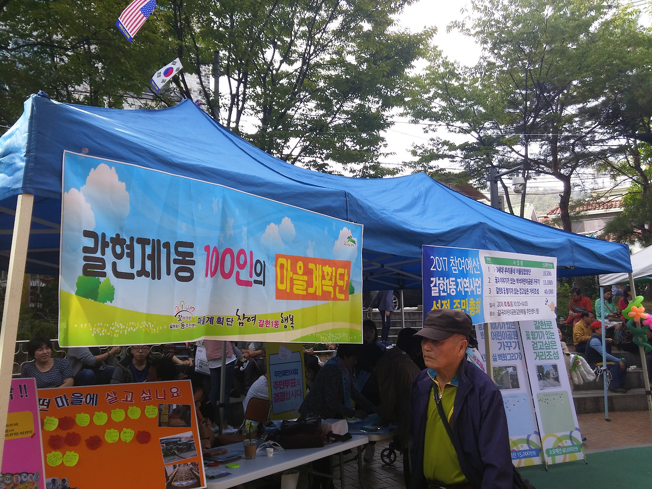 한켠에 마을 계획단에서 지역사업 설문조사를 하고 있다