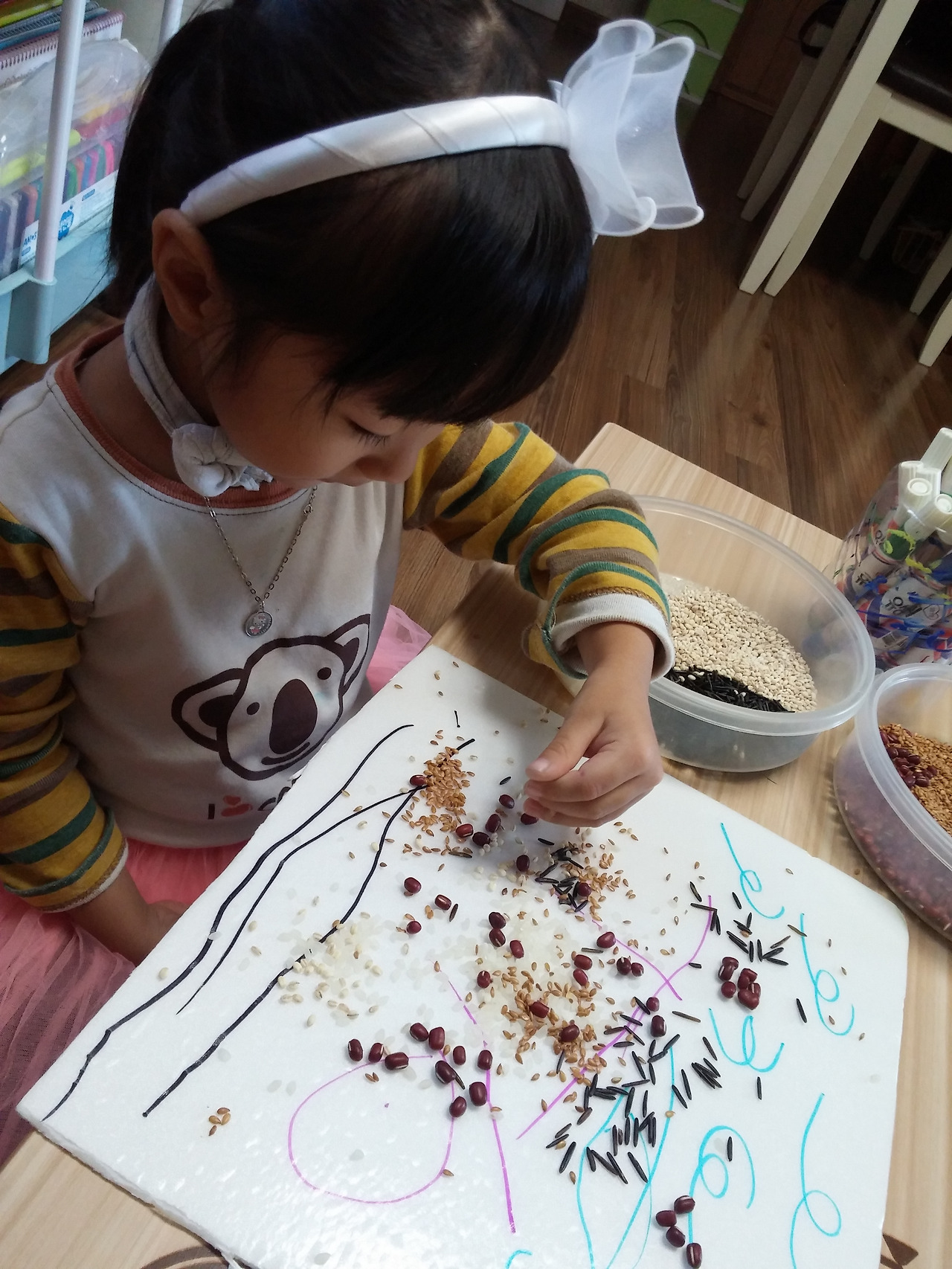 그나마 집에서 만지고 놀아본 건 쌀과 콩이 다 인 것 같고... 그 마저도 아이는 쌀이라 안하고 밥풀이라고 하는 통에 아이와 여러 곡식들을 가지고 놀아보았다