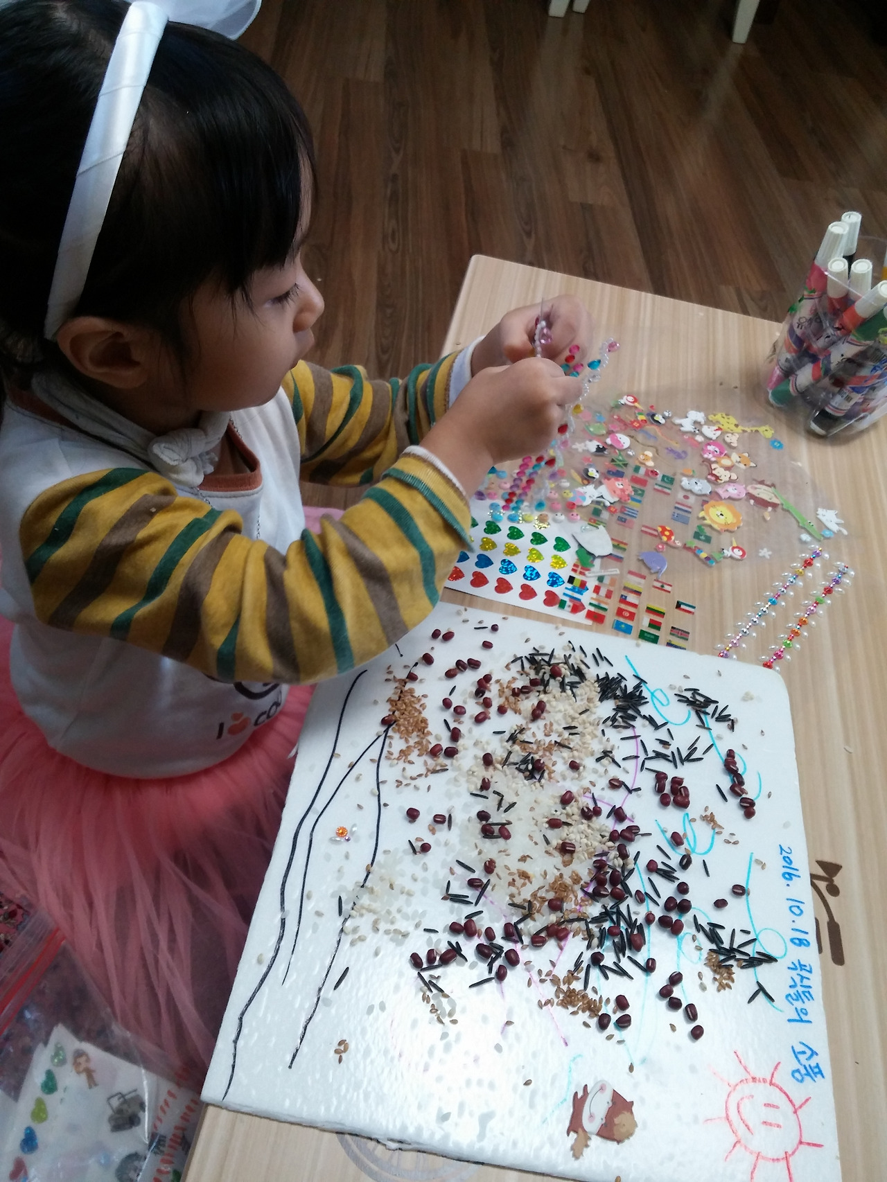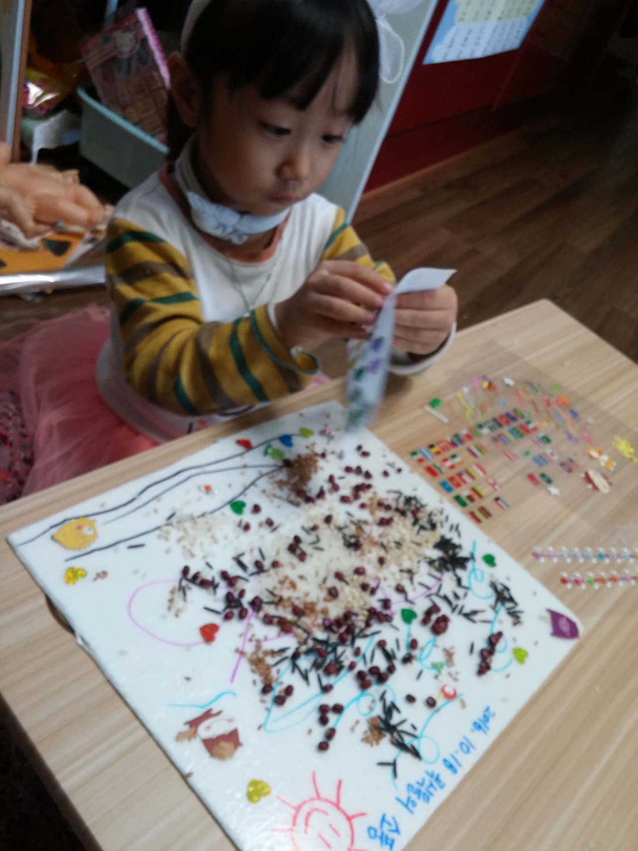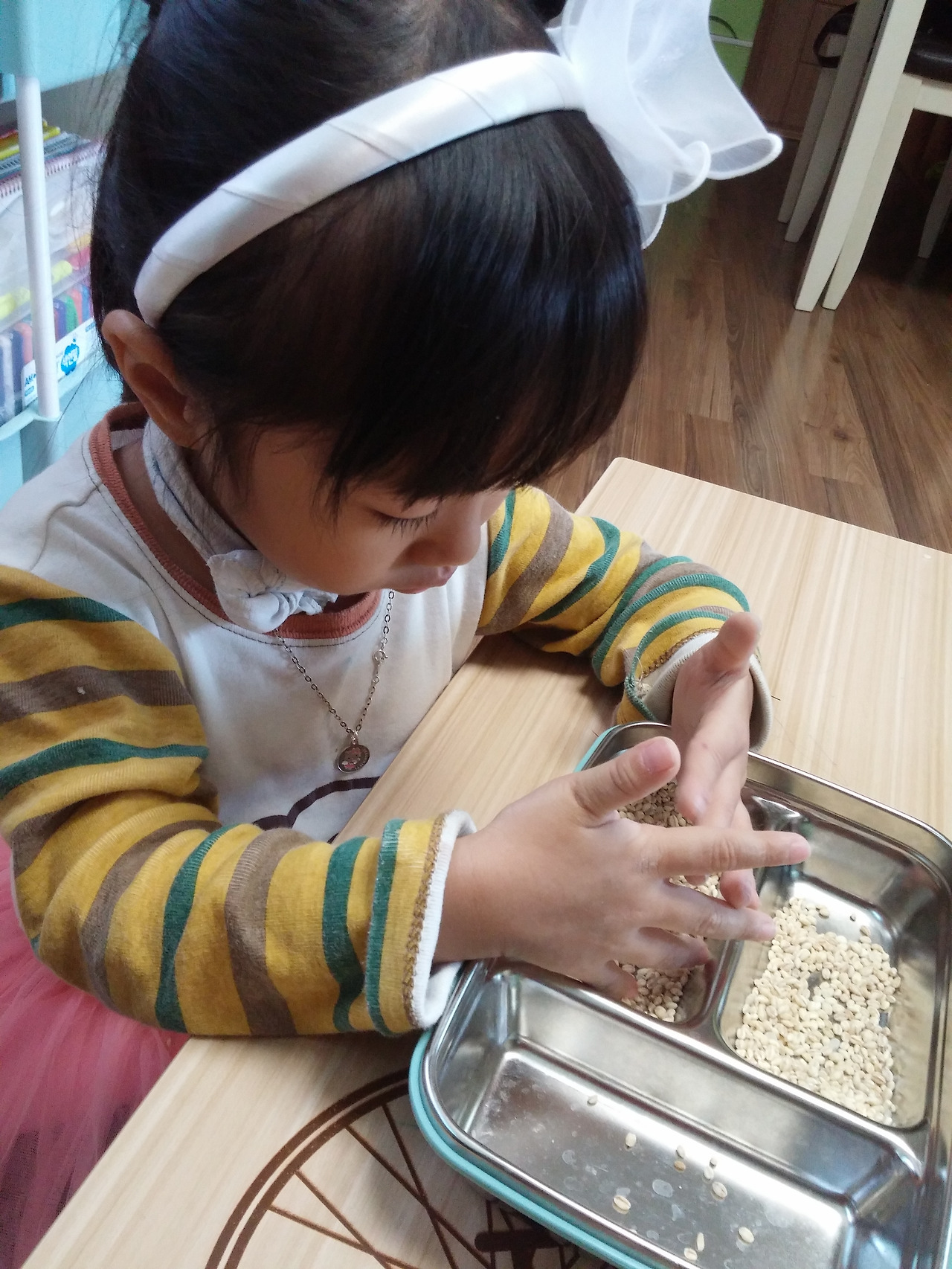 딸아이가 스스로 자유롭게 여기저기 곡식들을