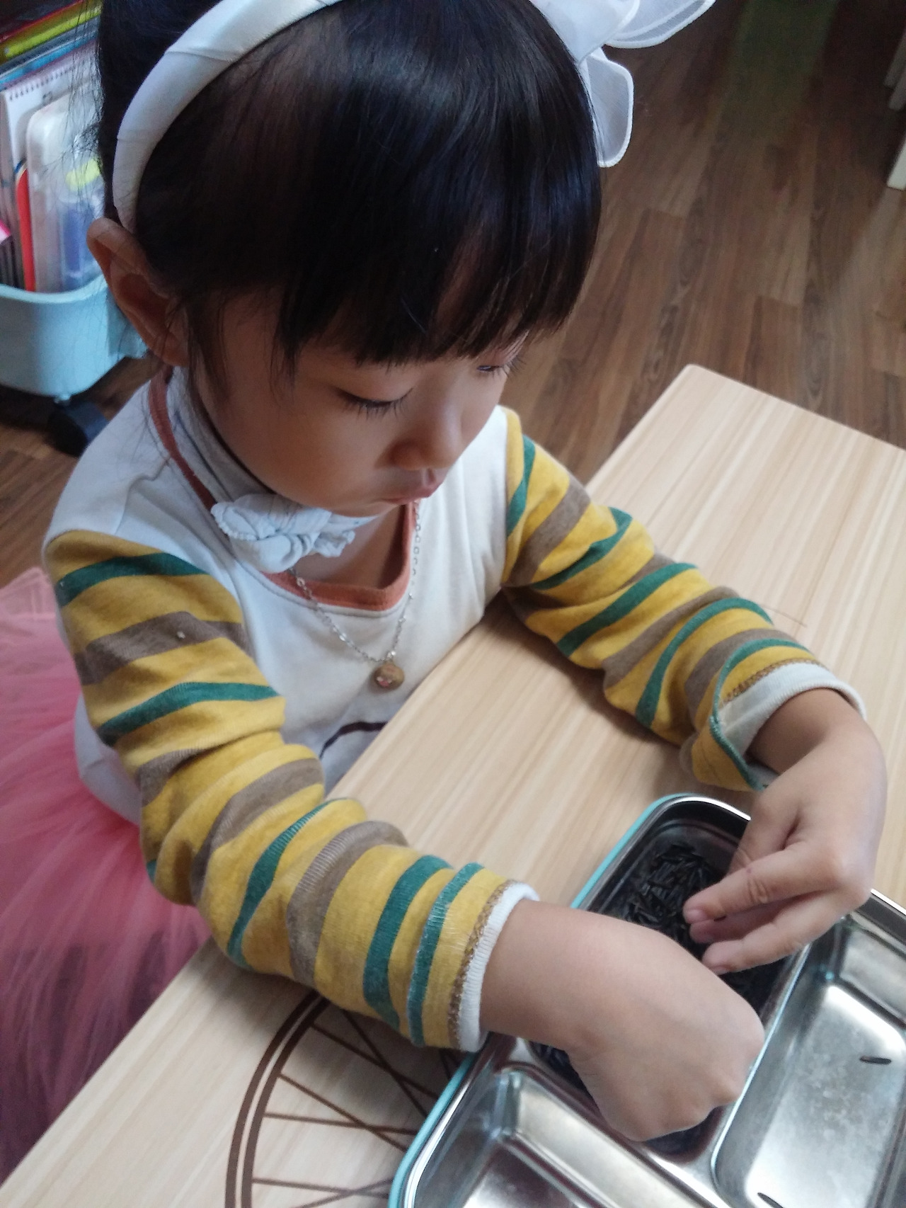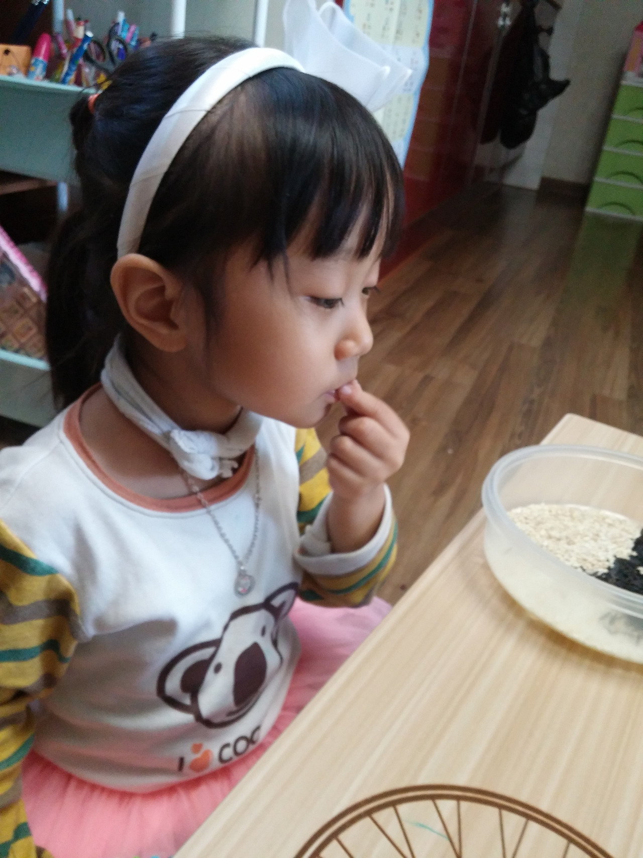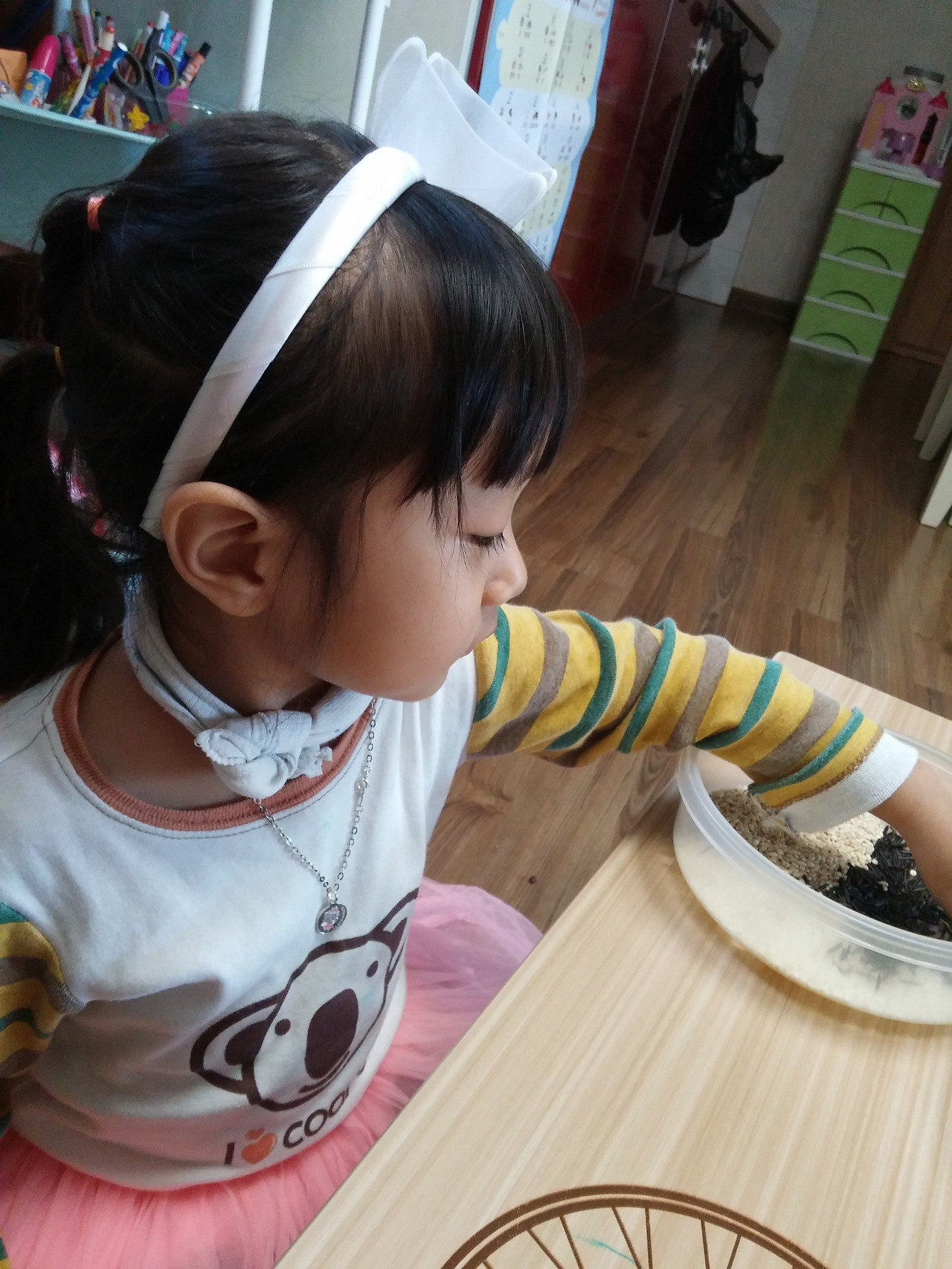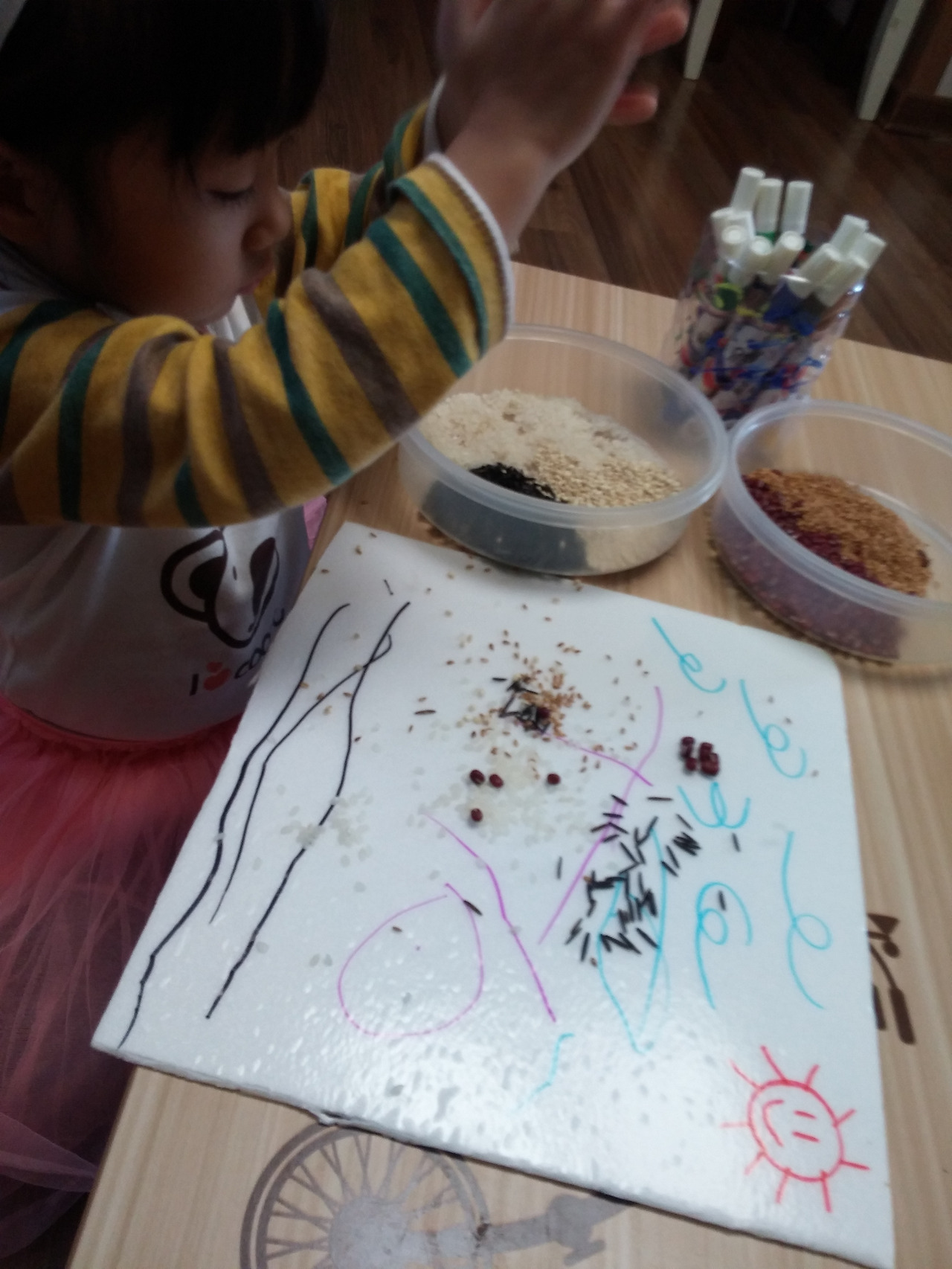 딸아이가 스스로 자유롭게 여기저기 곡식들을