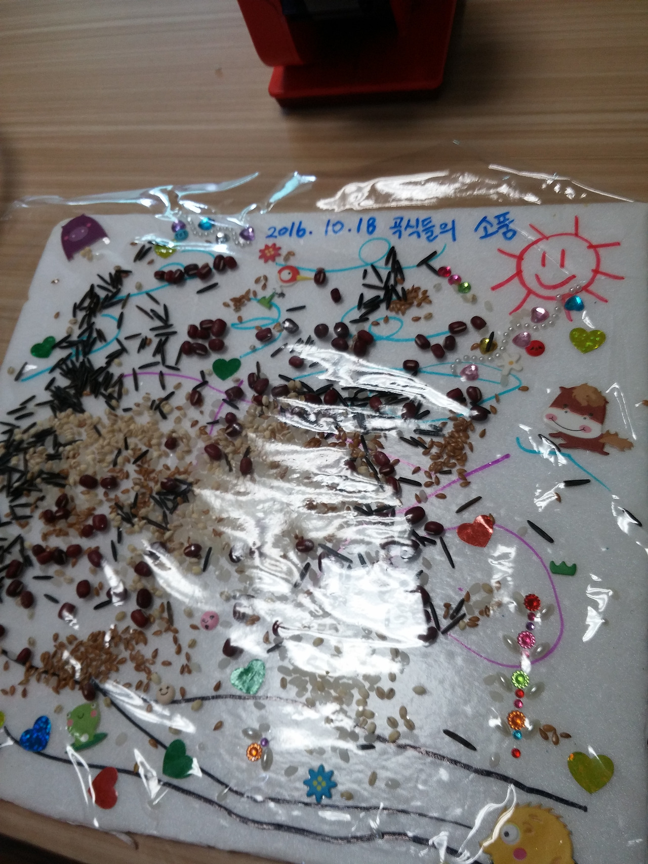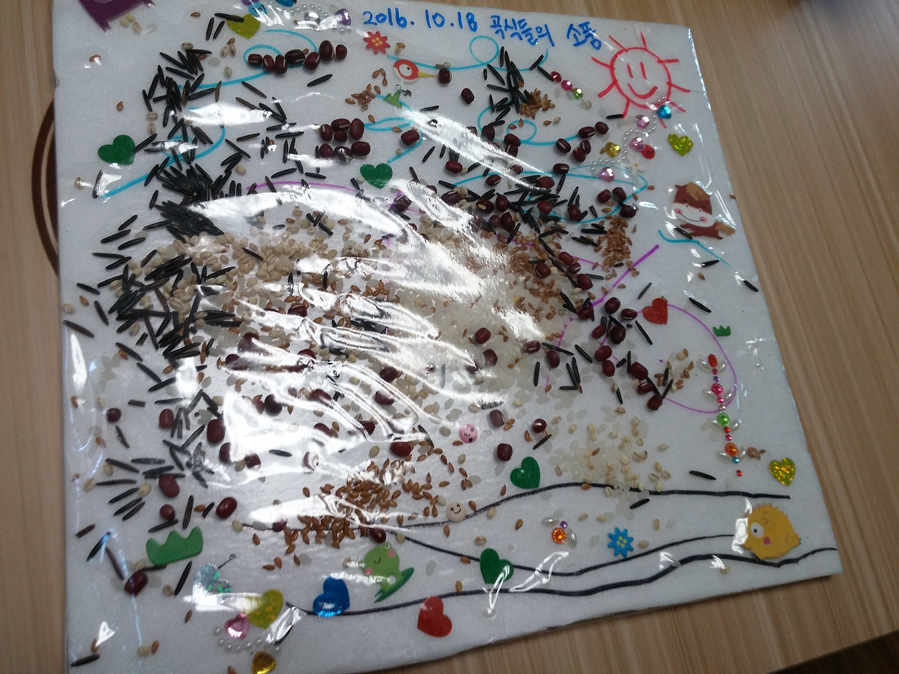 여기에 투명 아세테이트지를 감사면 곡식들이 떨어질 염려도 없고 액자처럼 벽에 붙여 놓을 수 있다
