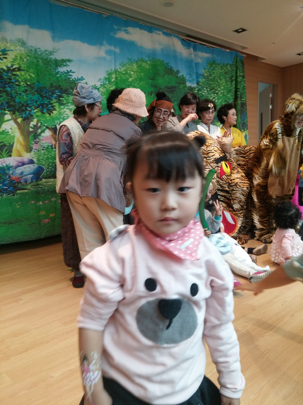 엄마들은 들락날락 애들은 무대 난입 초보배우분들은 진땀을 흘리고 몇몇 등장인물은 마이크도 안 된다