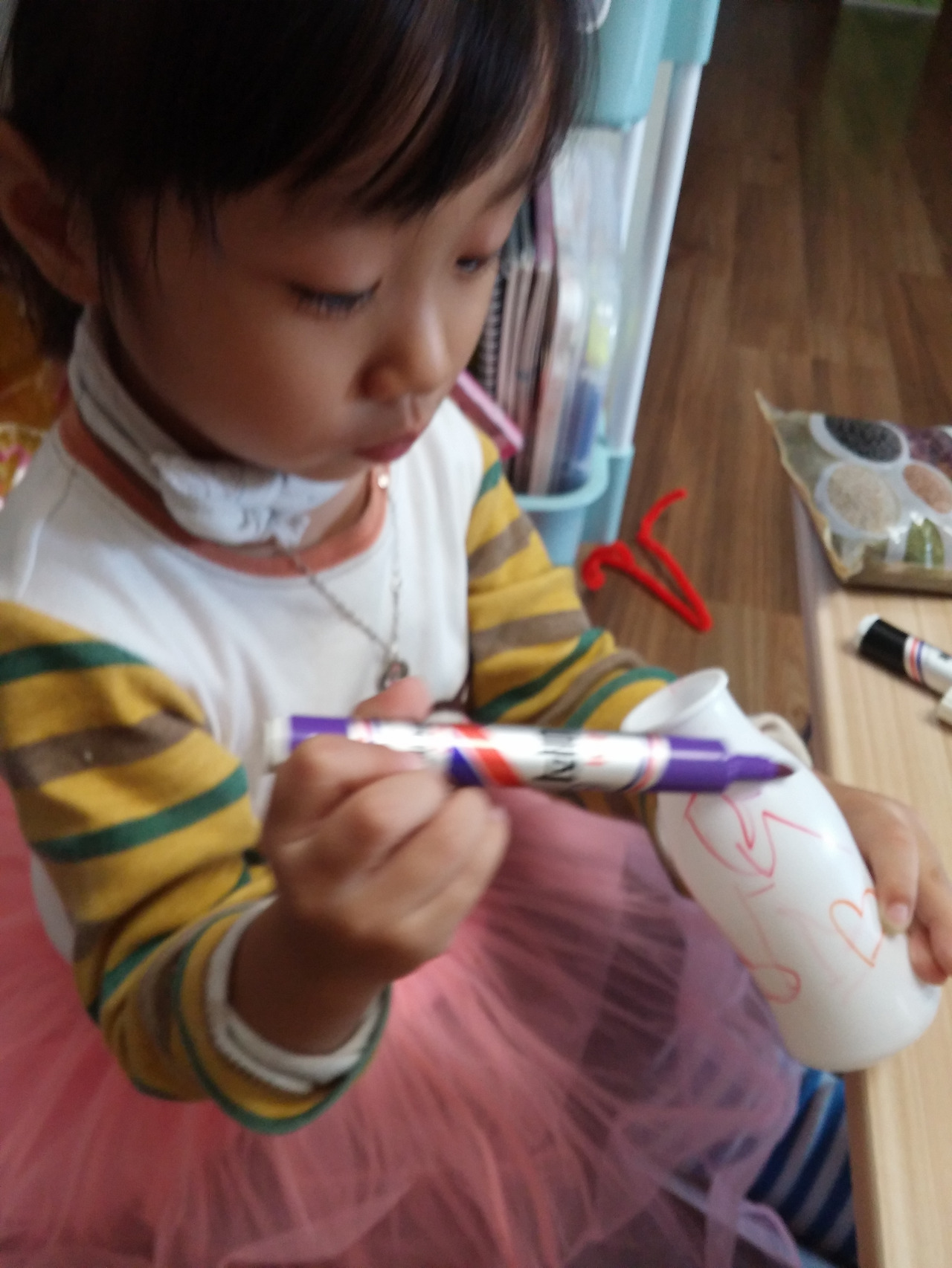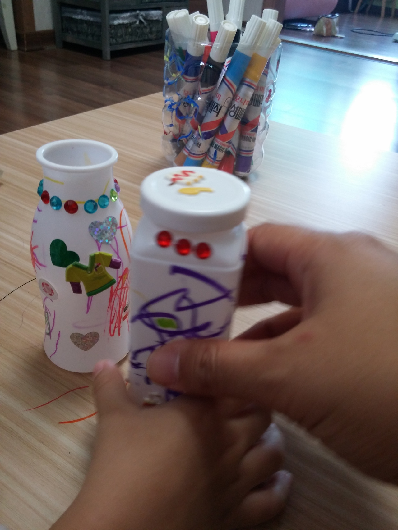 거기다 버리기만 했던 병으로 만들기를 하면 재활용의 의미도 알 수 있고 사물을 다른 시각으로 보는 융통성도 길러 준다고 한다