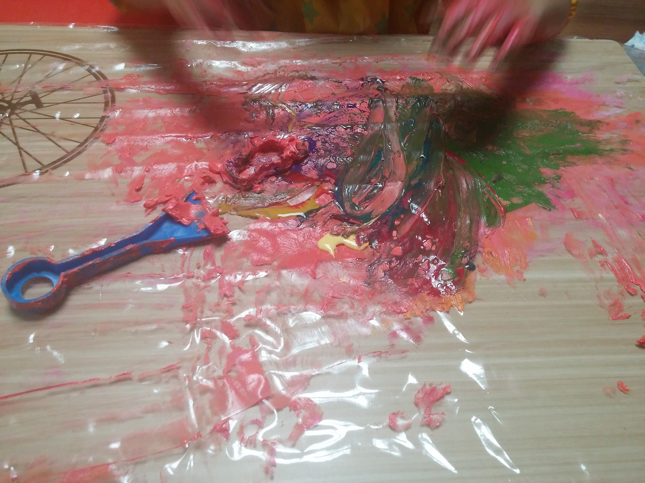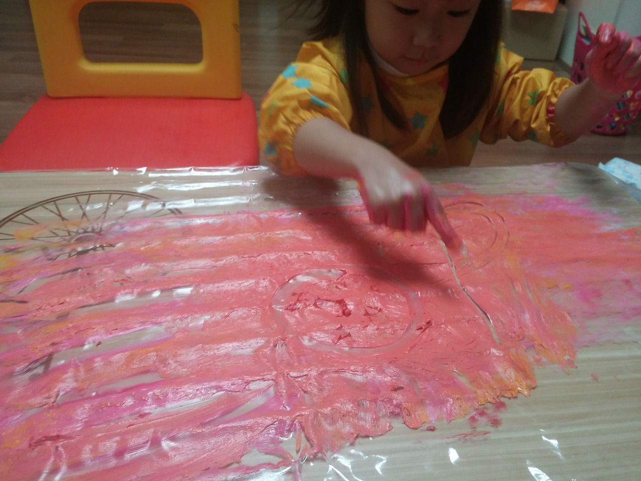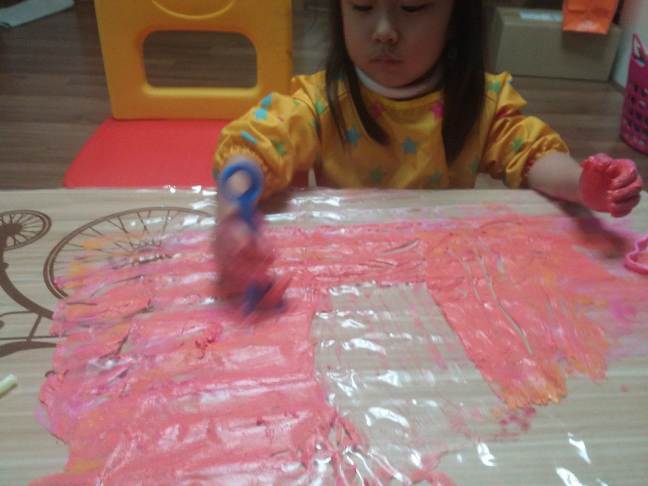 피부과에 갔다 1층에 있는 약국에서 우연히 본 바세린을 그런 이유로 사게 되었는데 생각보다 많은 양에 자주 쓰지 않아 서랍 한 켠에 넣어 두었다 물감놀이를 하고프다는 딸 아이와 바세린과 물감으로 핑거페인팅
