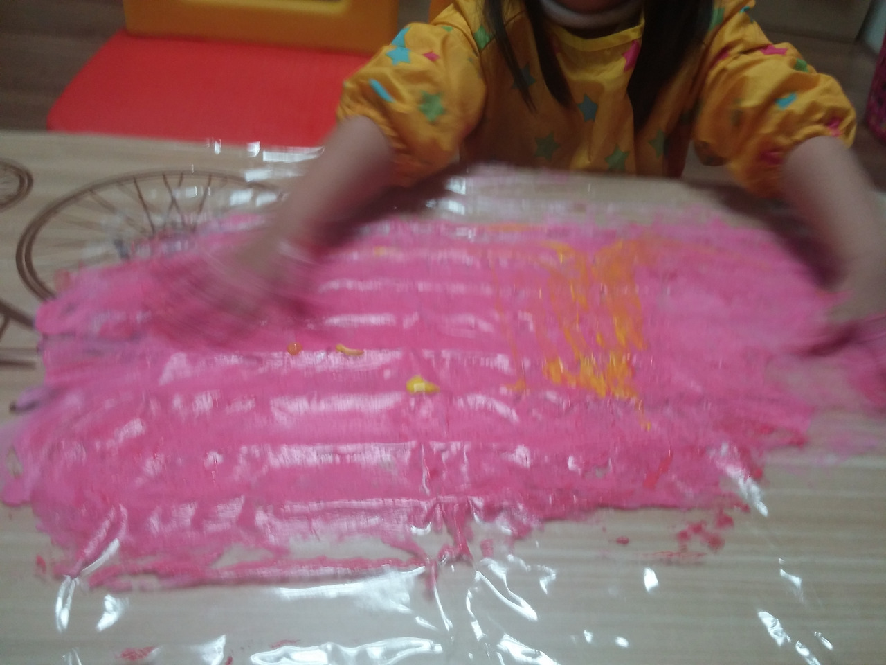 여기까지만 사진을 찍고 신나게 문지르고 그림도 그리고 쓱쓱 모아 통에도 담아보며 놀았다