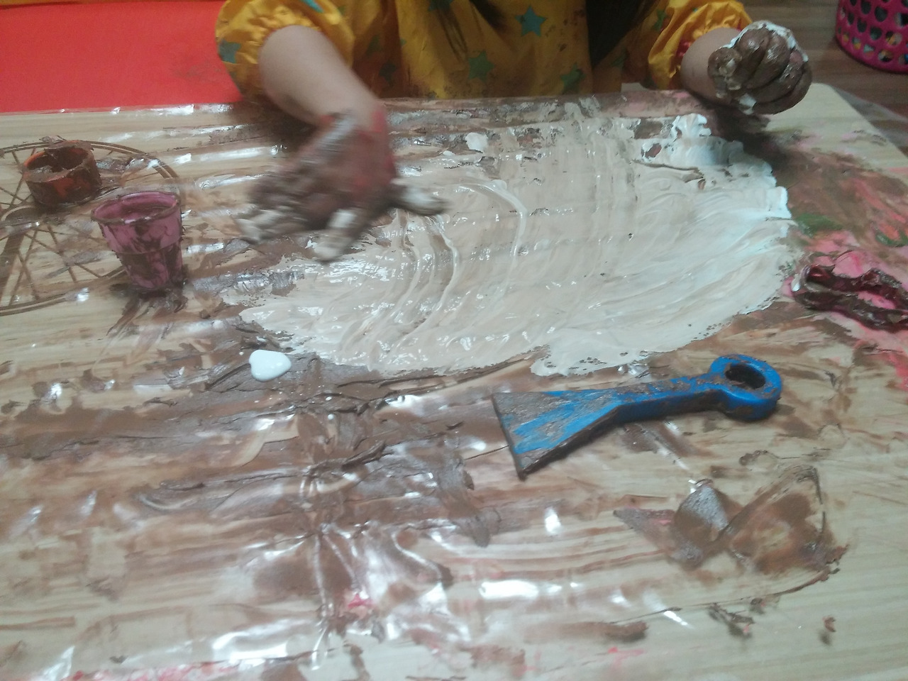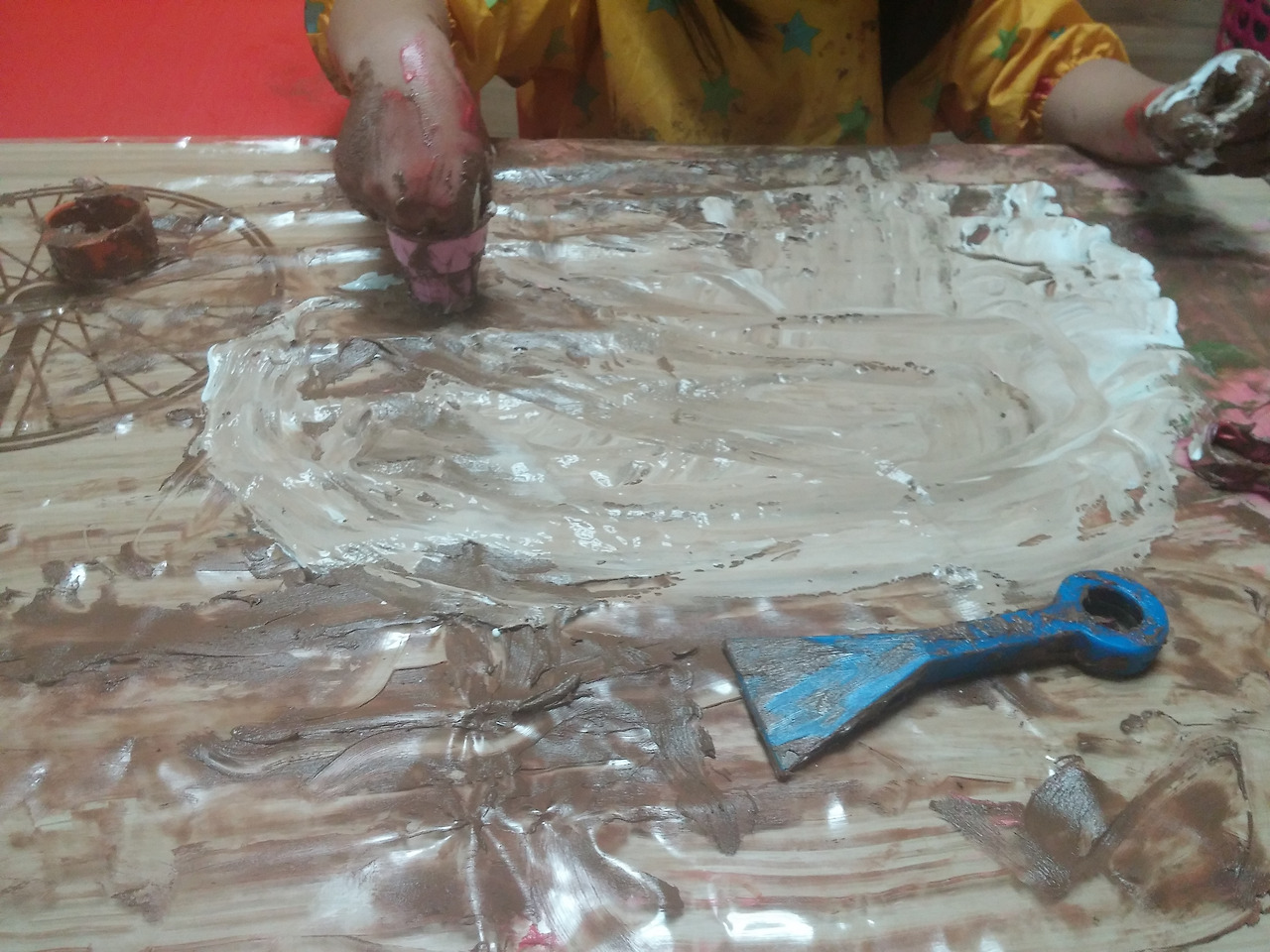 손이야 촉촉해지니 그냥 넘어간다고 해도...찍기틀과 찰흙 칼과 주걱은 기름기를 다시 또 닦고 세면대에 기름을 또 제거하고 있는데 딸 아이는 혼자 거실에 나가 아직 치우지 못한 바세린을 또 만지고 다시 묻고 그걸 또 씻고...