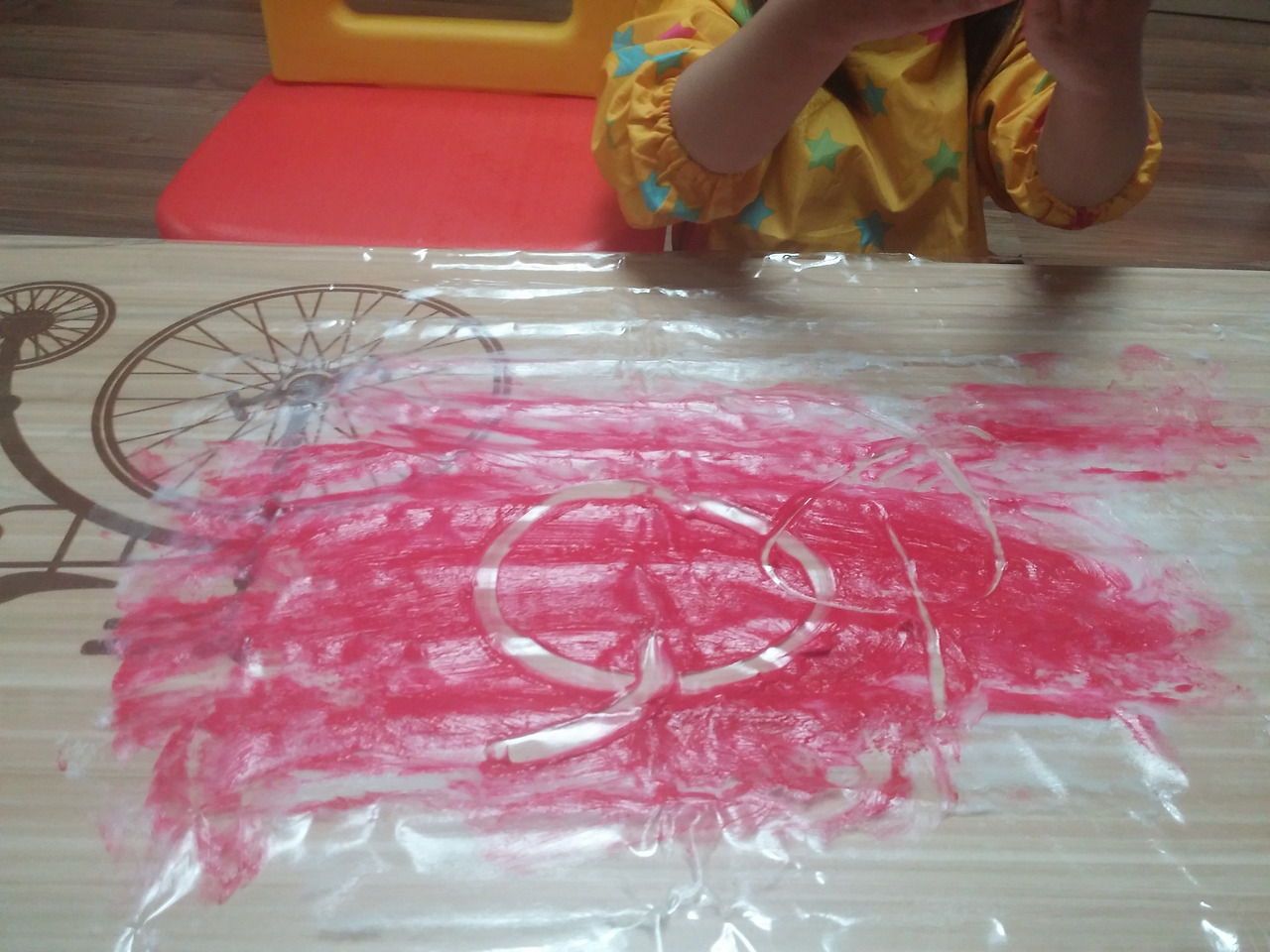 그러자 다시 흥미로워하는 아이 빨강색 사과도 손가락으로 그려 보았다