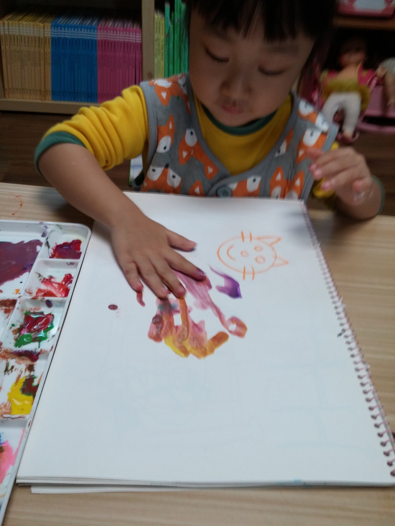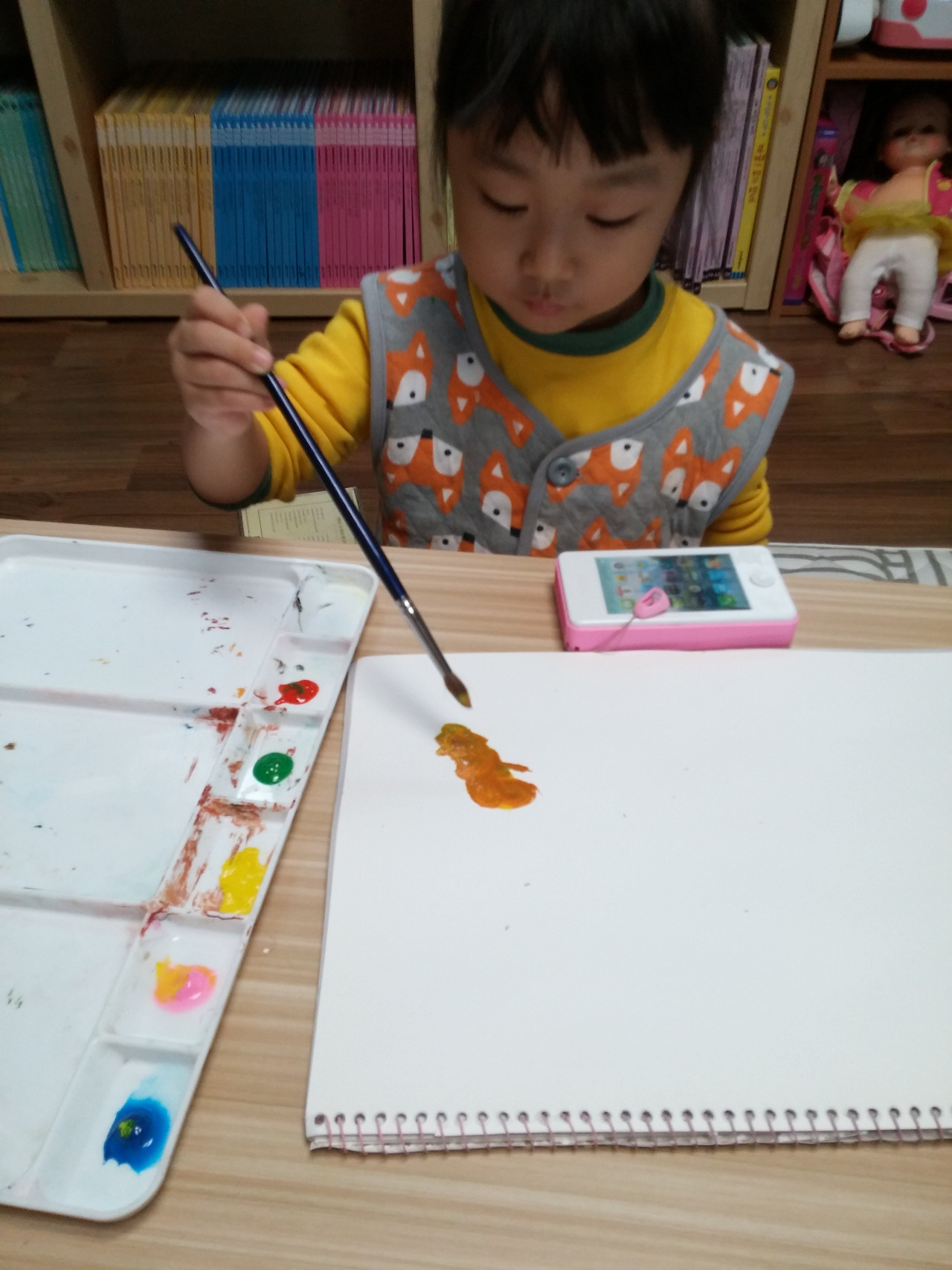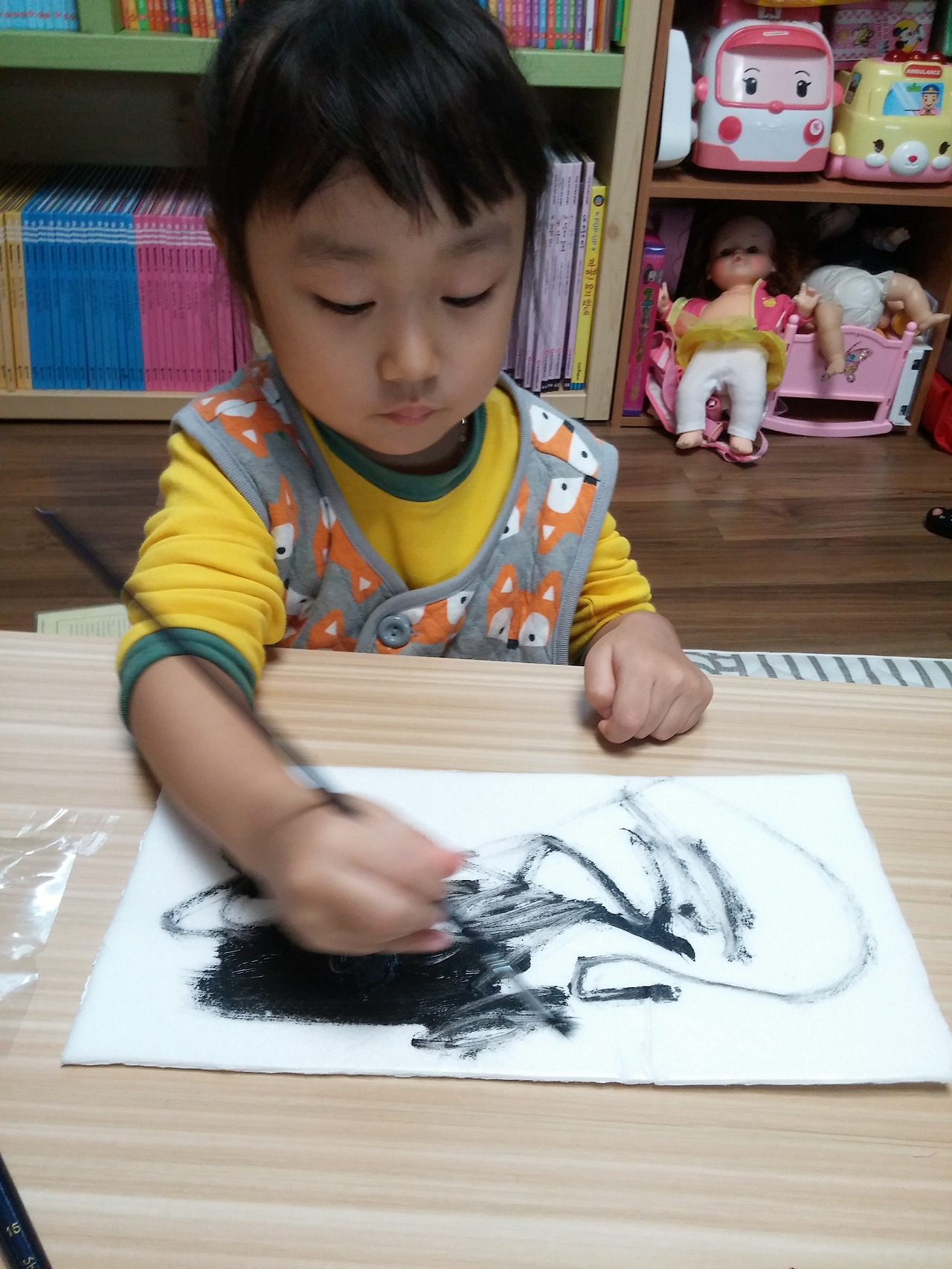 아크릴 물감이 마를 동안 스케치북물감으로 그림을