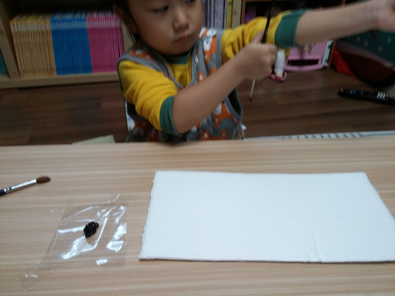 갤러리에 붙이기 위해 판 밑을 종이로 꾸미고 날짜를 쓰고 아이에게 작품 제목이 뭐냐고 물었더니