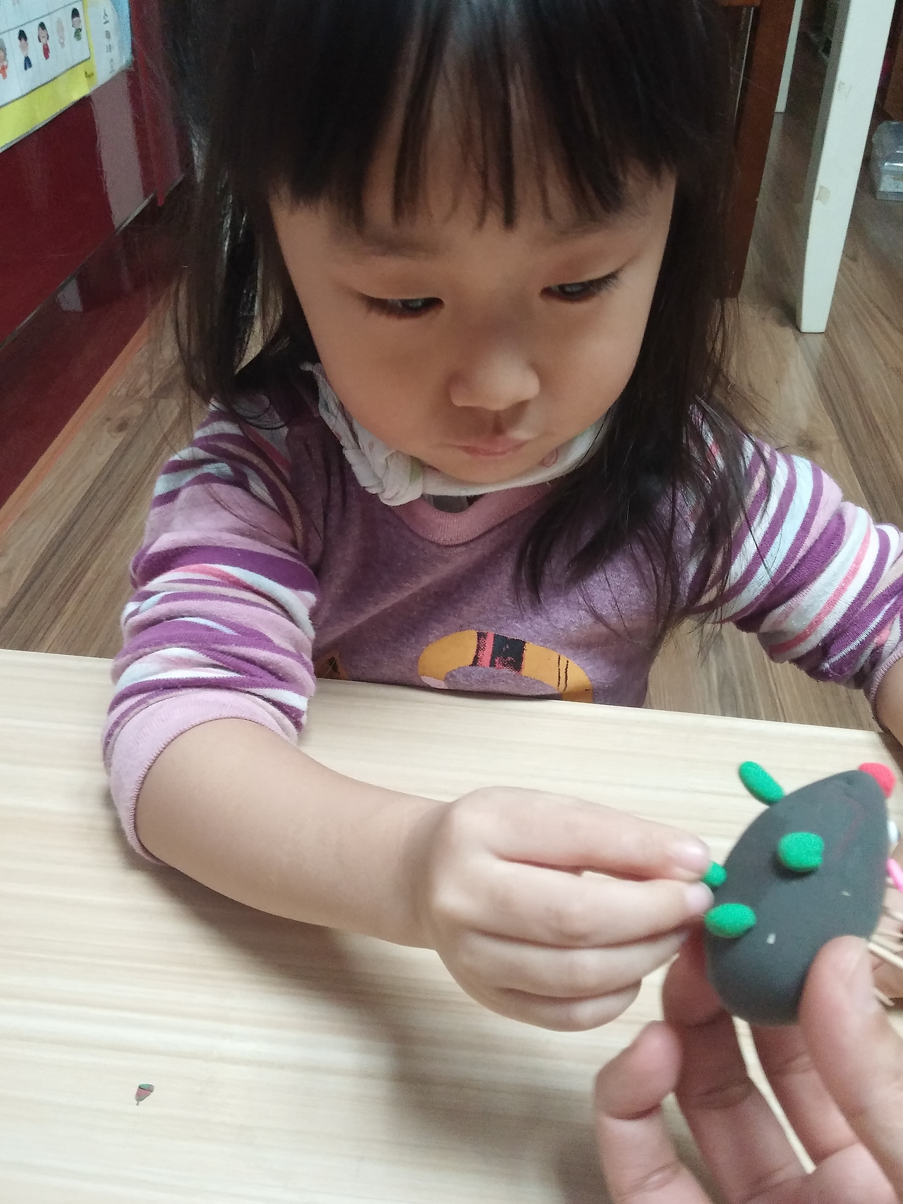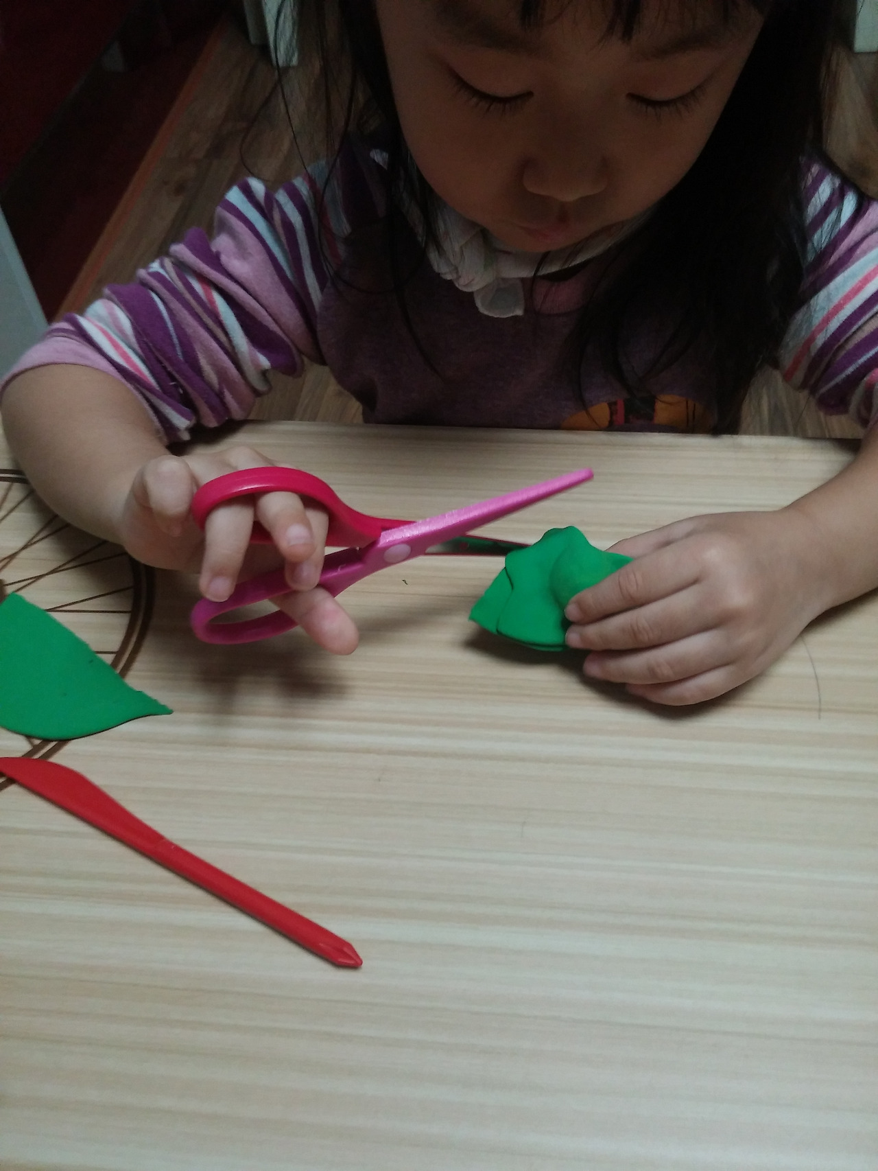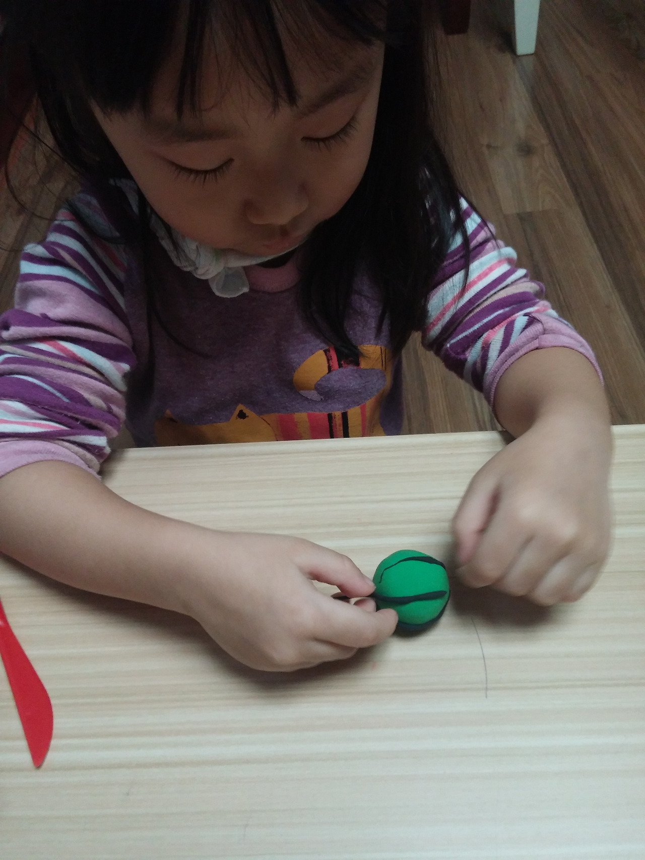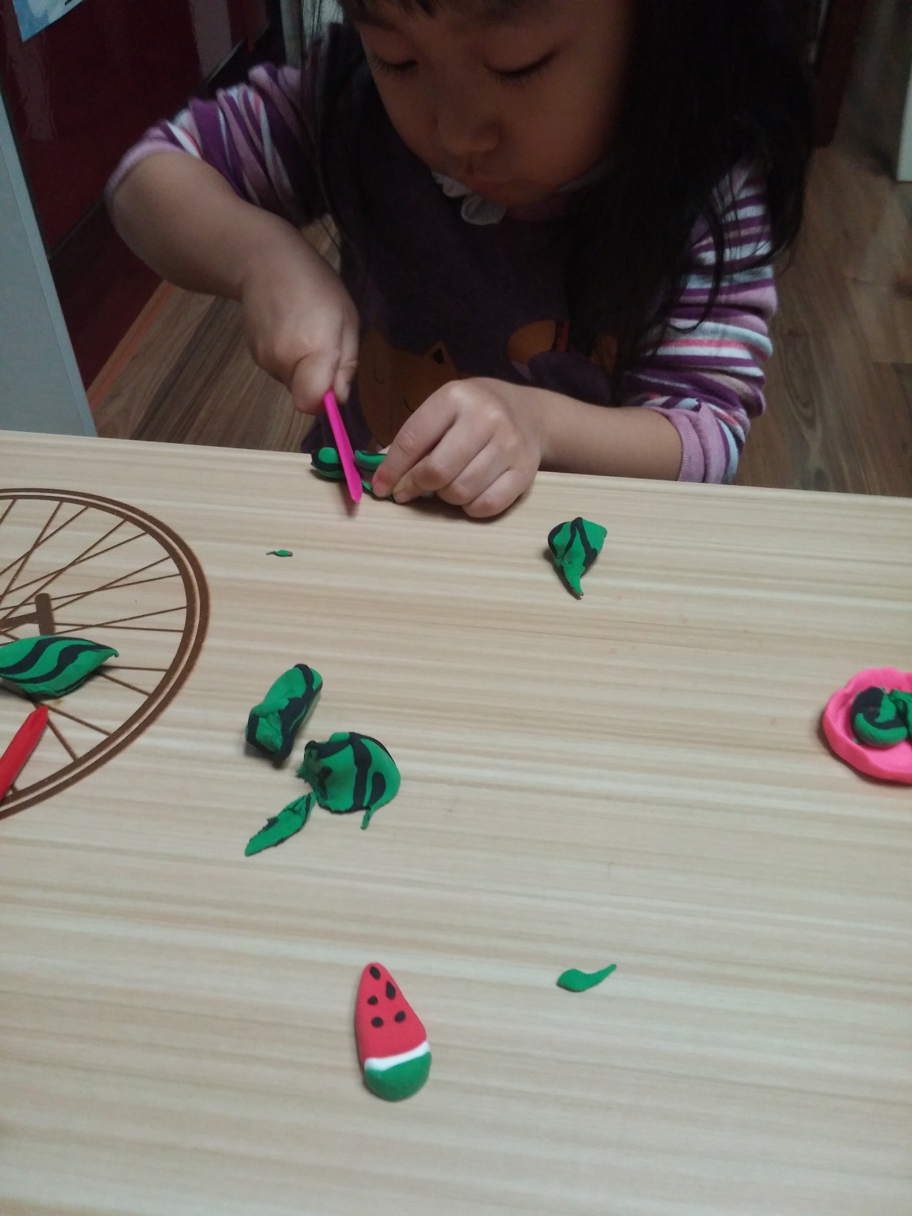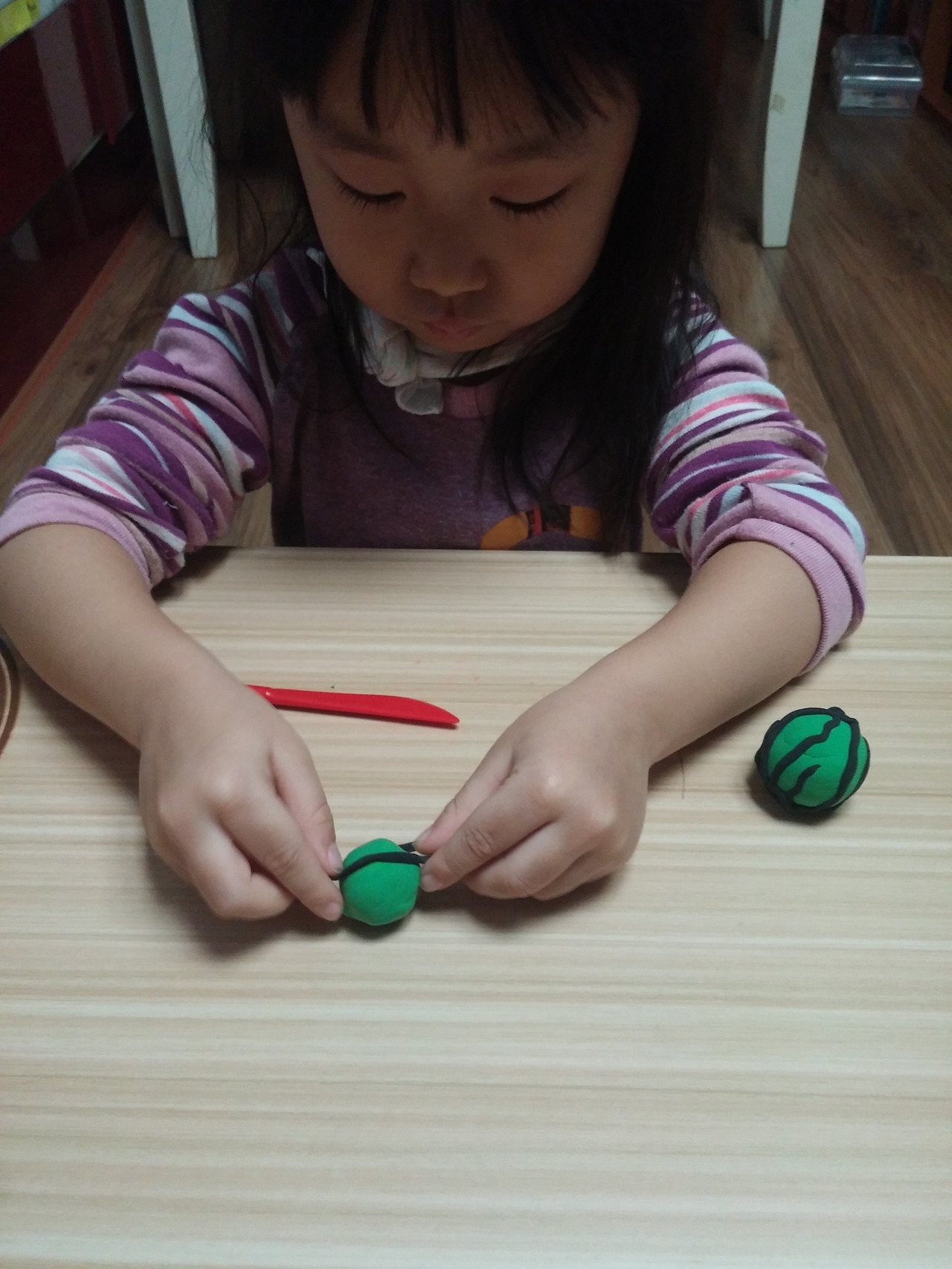 이럴까봐 아이가 수박을 만드는 동안 잘라진 모양을 옆에서 만들었다 슬쩍 놓아 주었다
