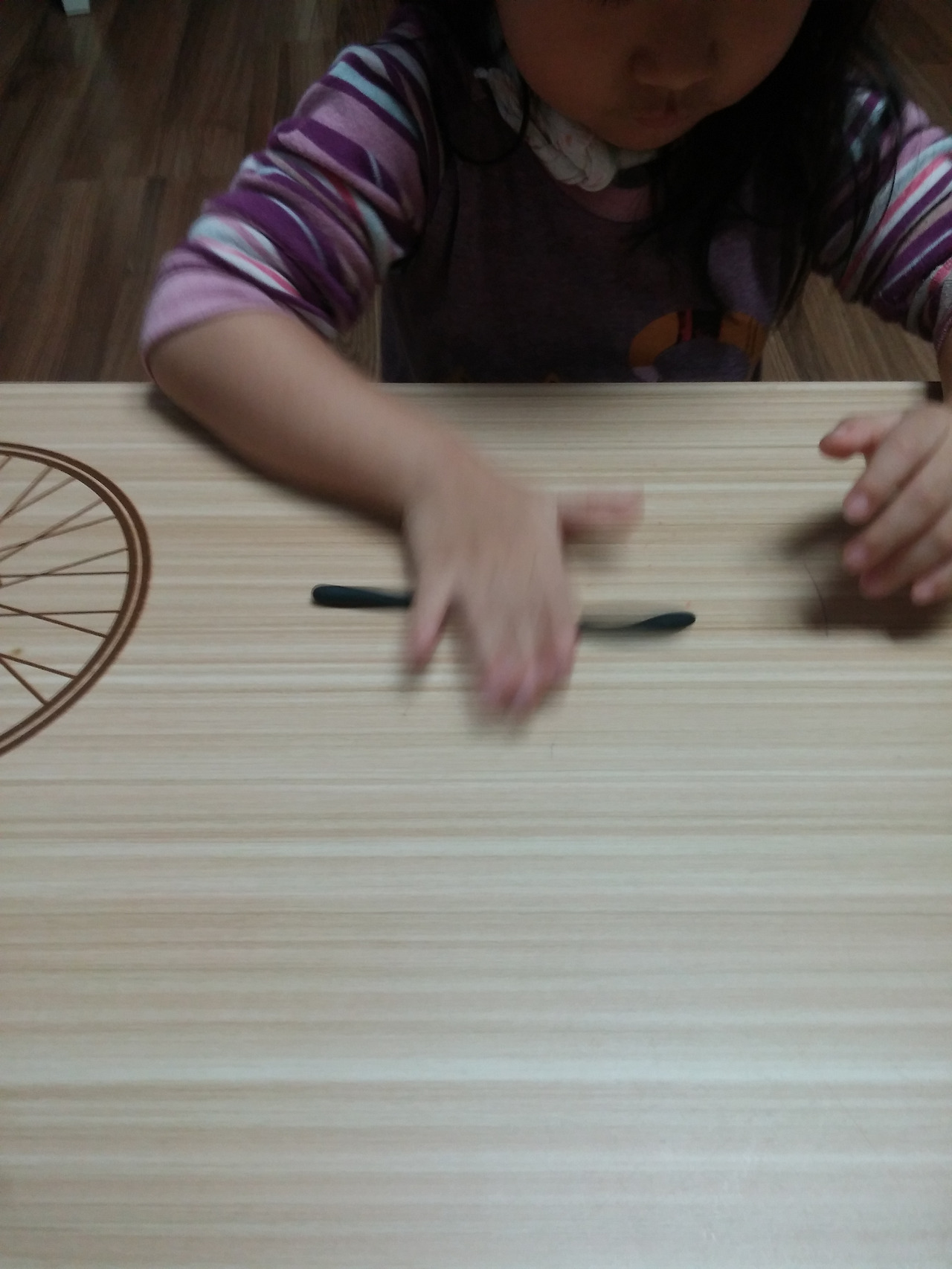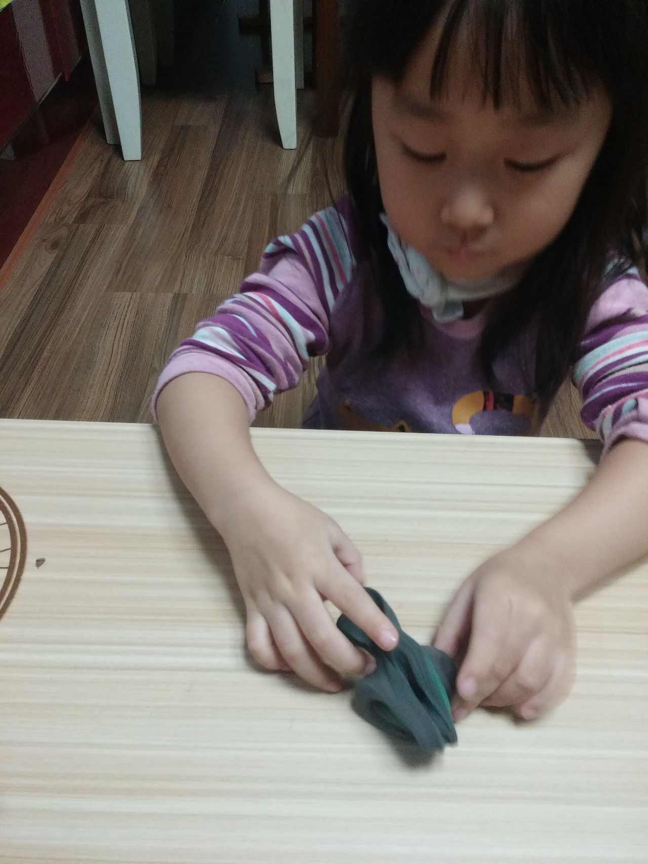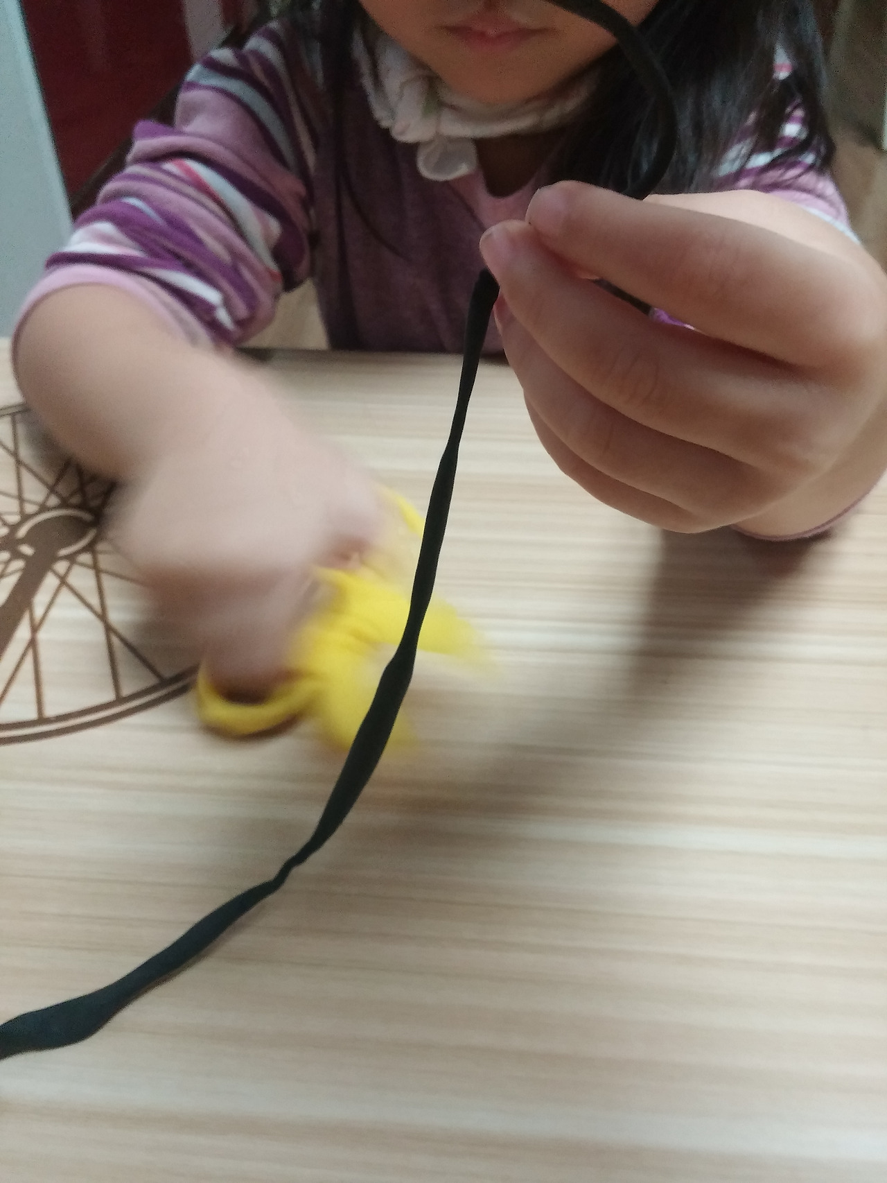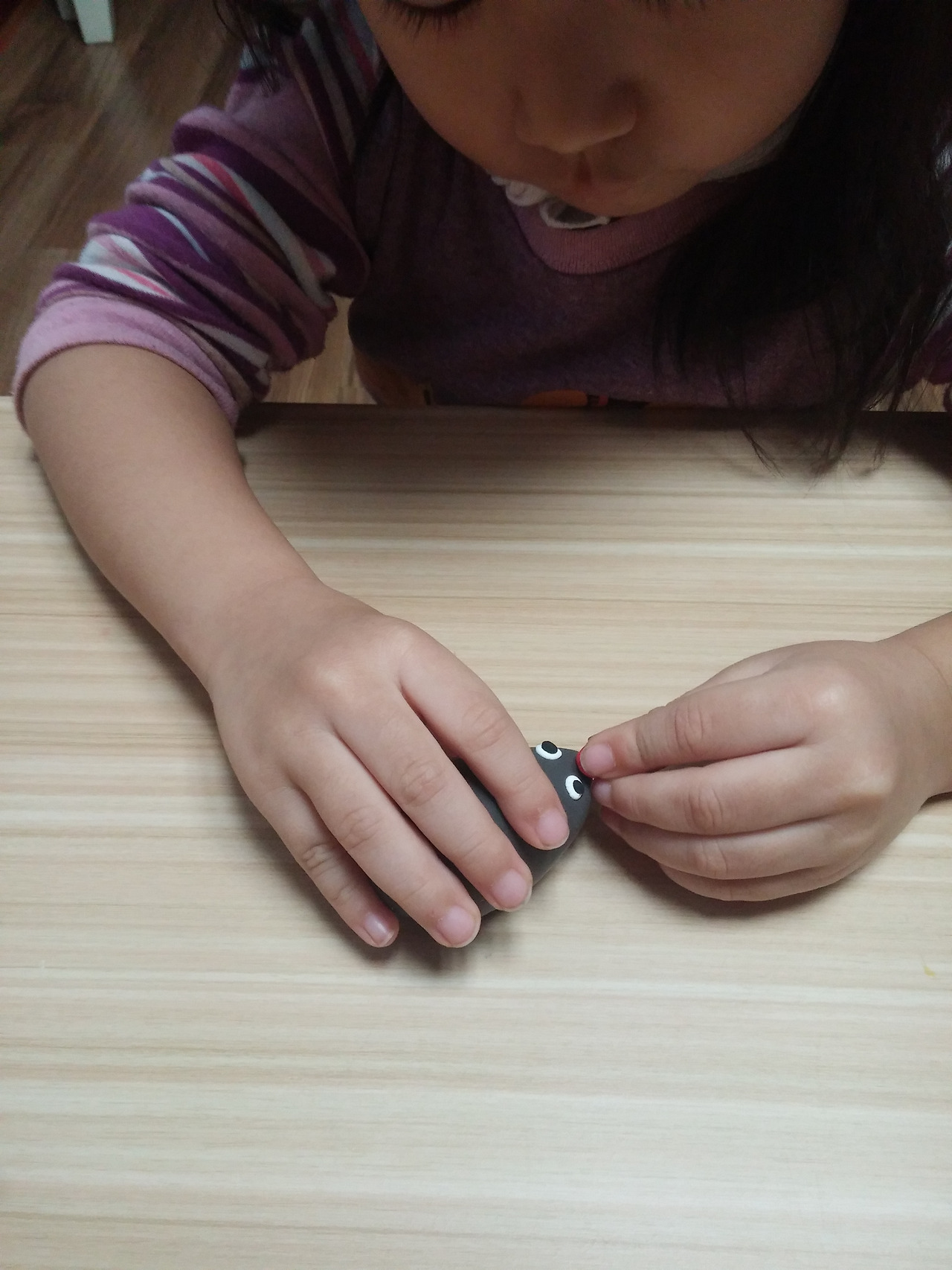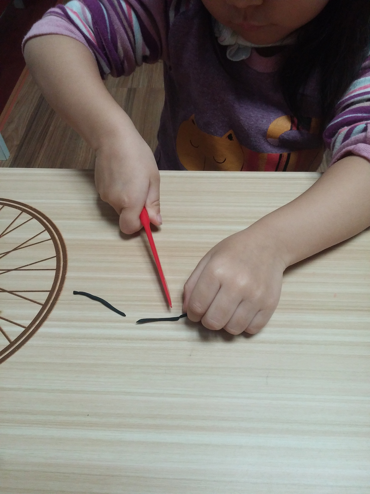 그 다음은 수박 줄무늬를 검정 아이클레이로 길게 만들고 가위로 자르려는데 잘 안 잘린다며