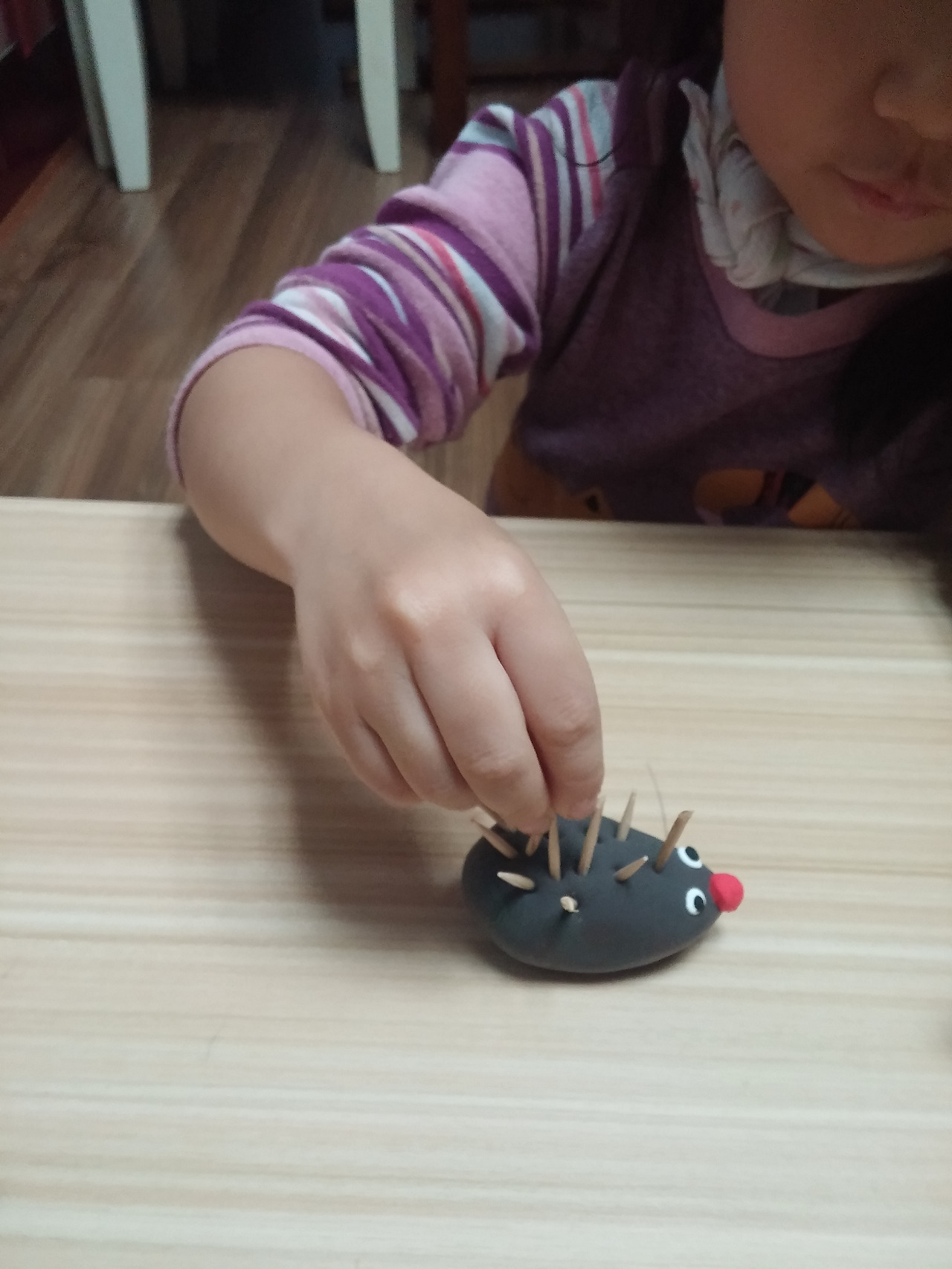 이쑤시개를 잘라 몸에 꼽고