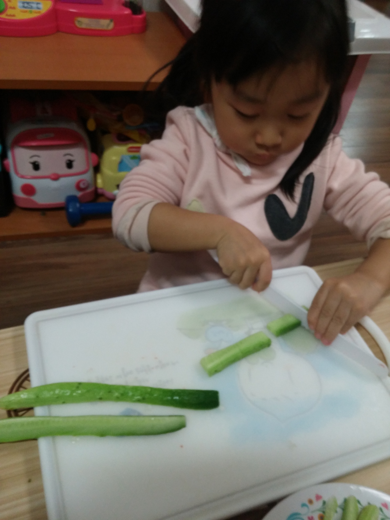 그래도 아침마다 오이를 먹는 엄마를 보며 냄새도 맡기 싫다고 코를 틀어막고 구역질을 하던 아이가 요리한다고 오이를 만지고 냄새도 맡아보다니!!