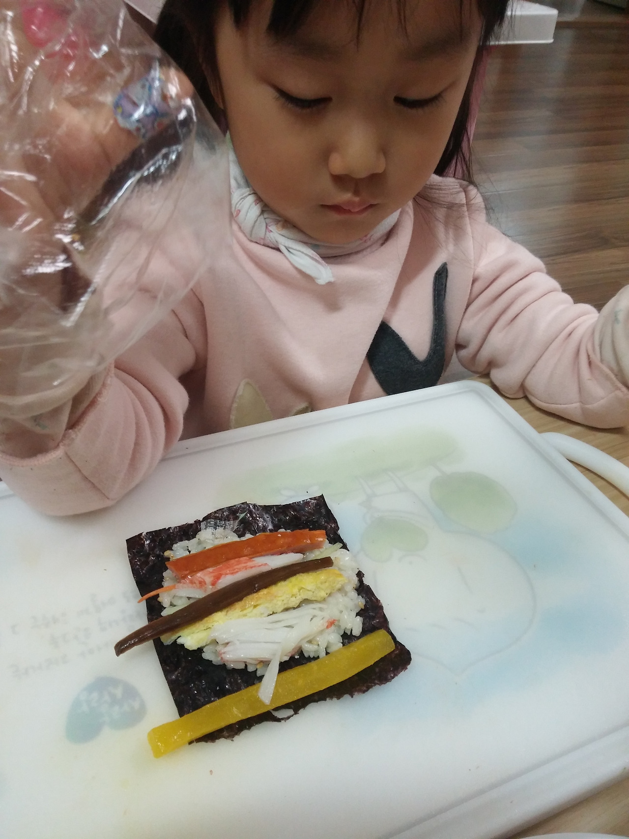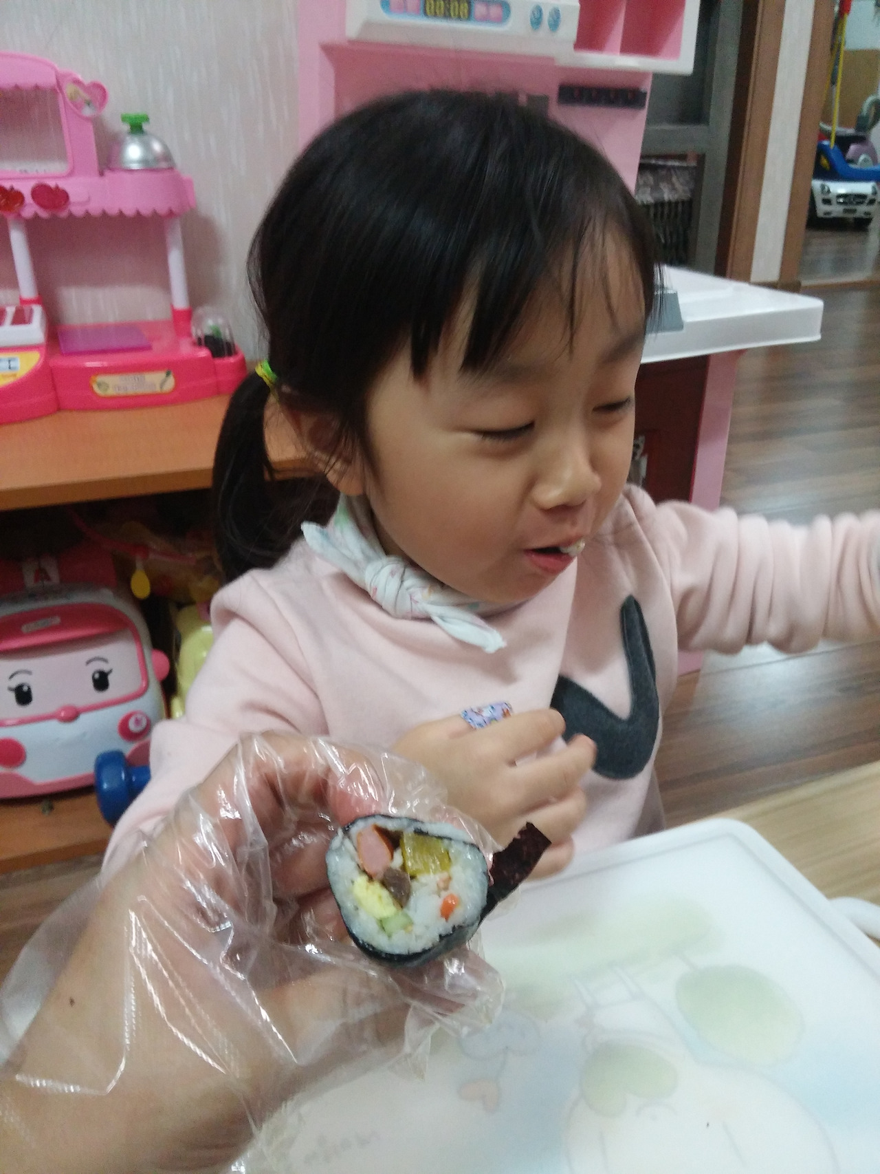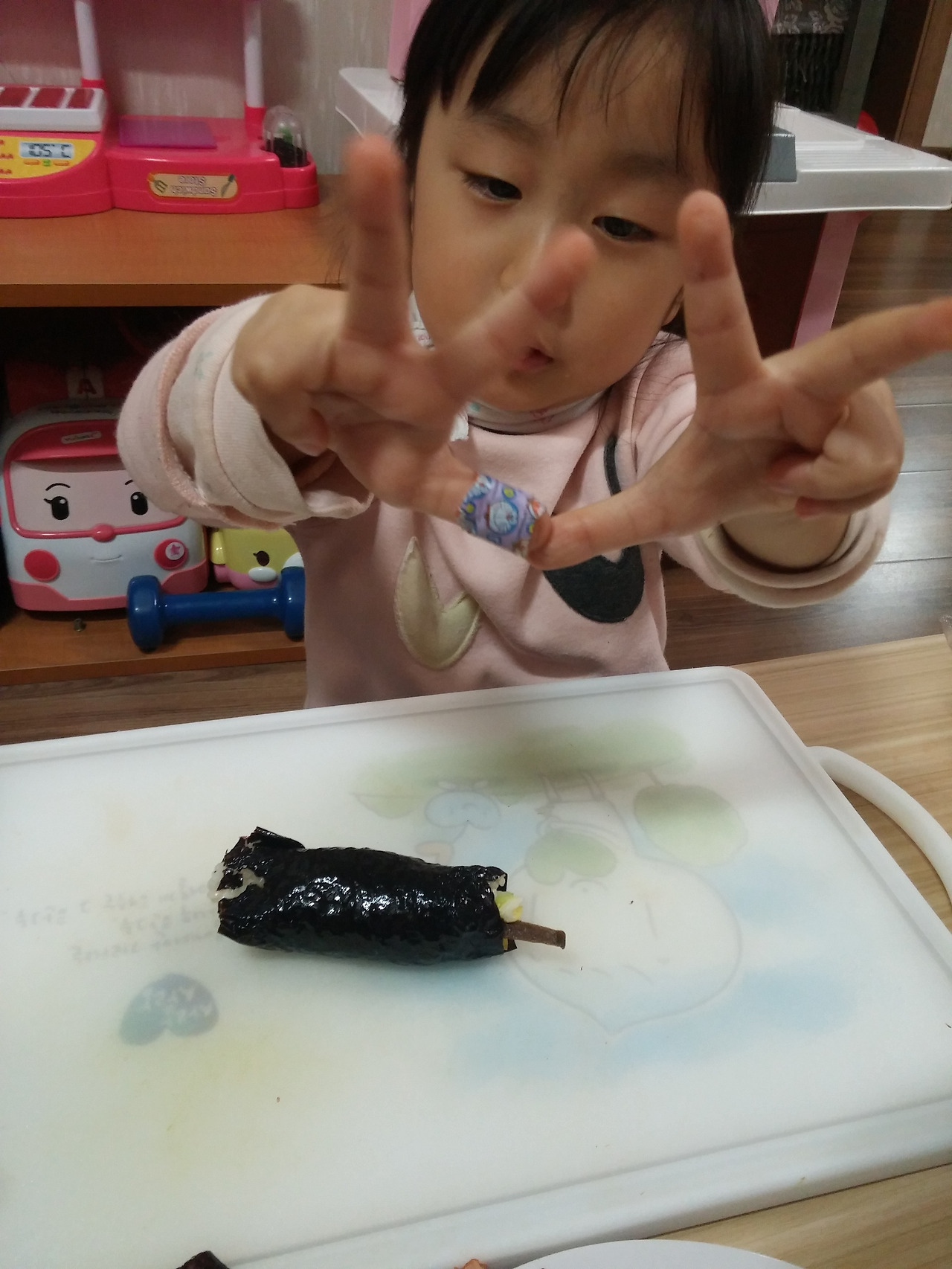 딸 아이 김밥 속에 당근과 오이가 이렇게 맛있었는지 몰랐다고 연신 말하고는 김밥을 먹고 먹고 또 먹었다
