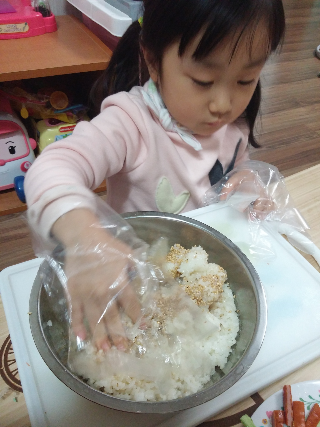 그래!! 딸이 먹고 싶다는데 고민할게 뭐 있을까 싶어 김밥재료를 사 집으로 왔더니 엄마를 도와 자기도 김밥을 만들고 싶다는 아이