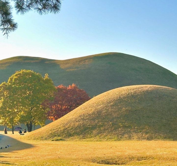 하지만 평원과는 사뭇 다른 분위기. 고개를 이리 돌려도 산, 저리돌려도 산. 의외로 답답하지는 않다. 사방을 둘러친 나즈막한 산들이 주름진 담요처럼 감싸 덮어주는것이 매우 포근스럽다. 그리고 곧, 이 역시 자유의 기운이라는 걸 알게 된다. 아기가 요람에 누워있어도 자유를 느낀다면 경주에서의 지금 이런 종류의 기분이겠지. 기억력아 일해라. 움직일 수 없는 몸을 버둥거리며 세상 따뜻한 표정의 어머니만을 바라보고 있는 6개월배기 아가가 되자. 그 눈으로 엄마의 몸과 같은 무덤의 능선을 몇 시간째 바라보자.