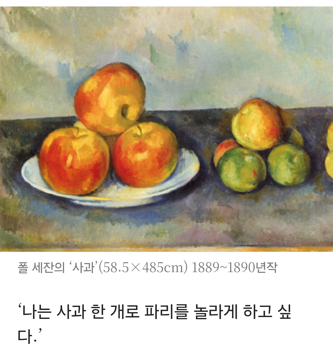 세잔이 사과를 그렇게나 그려댄 이유는 집요한 관찰의 긴 시간동안 썩지 않고 버텨주는게 사과뿐이어서라고 하더라구요.