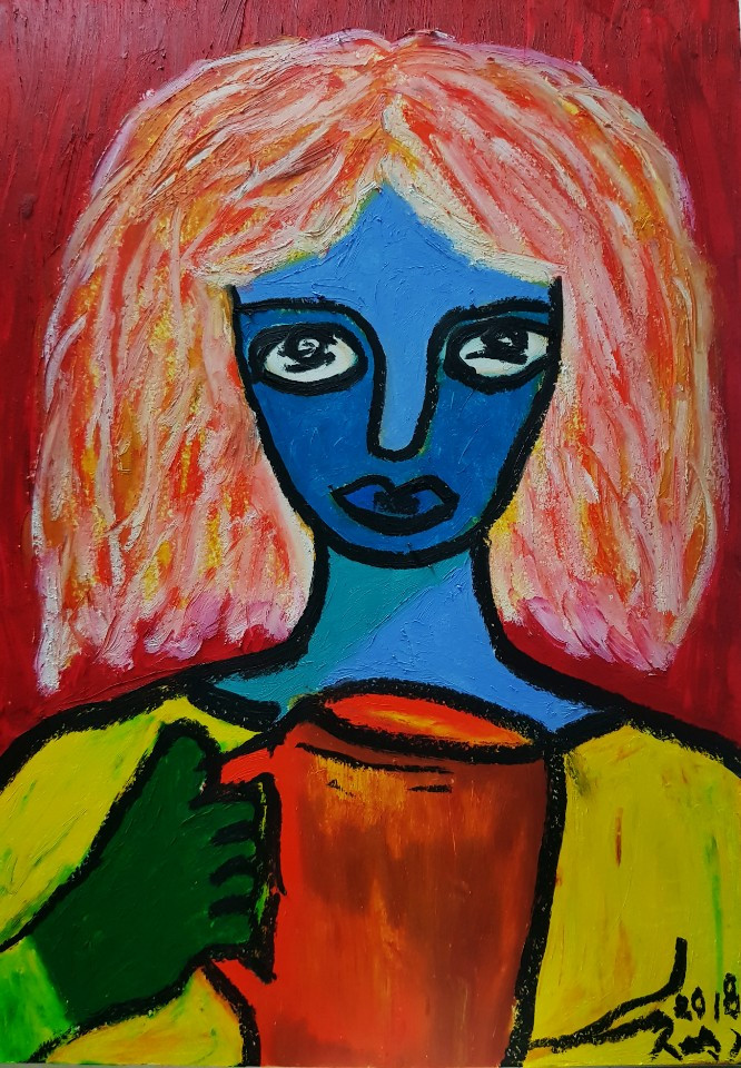 -JAB KIM, <맥주 마시는 여자>, 2018