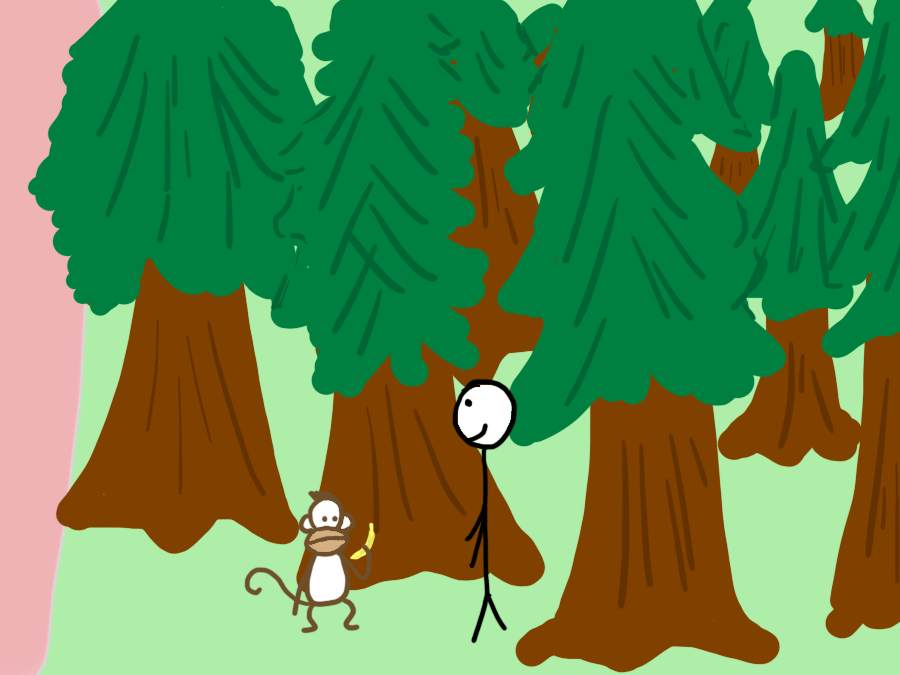 이 숲의 반쯤 왔다면 이성적인 의사 결정자는 작은 성취감을 느끼기 시작하며 자존감이 상승한다. 이때, 숲 속에서 바나나가 한 개씩 떨어진다. 바나나를 좋아하는 원숭이는 바나나에 정신이 팔려 한동안 암흑 놀이동산으로 돌아가자고 보채지 않는다.