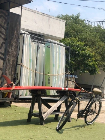 내가 묵은 게스트하우스는 순박한 사장님 커플이 함께 운영하는 곳이다. 나무로 짜인 보드 보관함들이 길게 쭉 늘어져 거실과 안뜰로 이어지는 공간을 아늑하게 만들어주었다. 화장실로 이어지는 복도에서는 기분 좋은 향이 났고 얼마 전 새로 만들었다는 샤워장은 매우 깔끔했다. 마침 남자 사장님이 서핑을 하러 바다에 나가 있었기 때문에 여자 사장님과 먼저 인사를 했다. 체크인을 하기 전까지 친절하게 이런저런 얘기를 해주었다. 이 멋진 공간을 두리번거리는 사이 왼쪽 페달이 없는 오래된 자전거를 능숙하게 타고 남자 사장님이 도착해 나를 반겨주었다. 이 아늑한 게스트하우스에서 난 이틀을 묵게 된다.