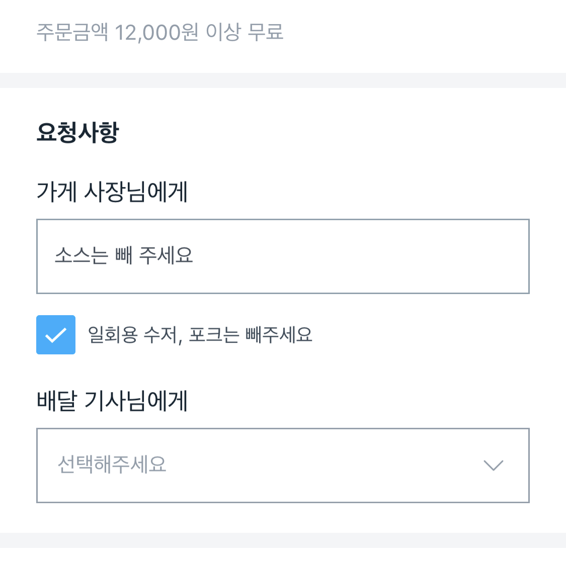 쿠팡이츠가 얼마나 사용자의 편의를 고려하여 앱을 만들었는지 알 수 있는 기능 중 하나이다. 기존의 배달 서비스 앱에서는 요청 메모가 한 곳 밖에 없었다. 지금까지 음식점 사장님에게 요청 할 말과 배달원에게 요청 할 말을 따로 할 수 없었다. 둘 모두에게 메모를 남기면 최대글자수가 넘어가기 일쑤였다. 예를 들면 배달의 민족에 있는 00치킨에서 리뷰를 작성하면 구운계란이나 감자튀김을 준다고 한다. 요청 메모란에 "리뷰약속-구운계란"이라고 써야 구운계란을 준다. 고객은 혹시모를 위험을 방지하기 위해 치킨을 문앞에 놓고 갔으면 하기 때문에 "문앞에 놓고 가주세요" 라고 쓰고싶지만, 최대 글자 수 때문에 모두 쓸 수가 없다.