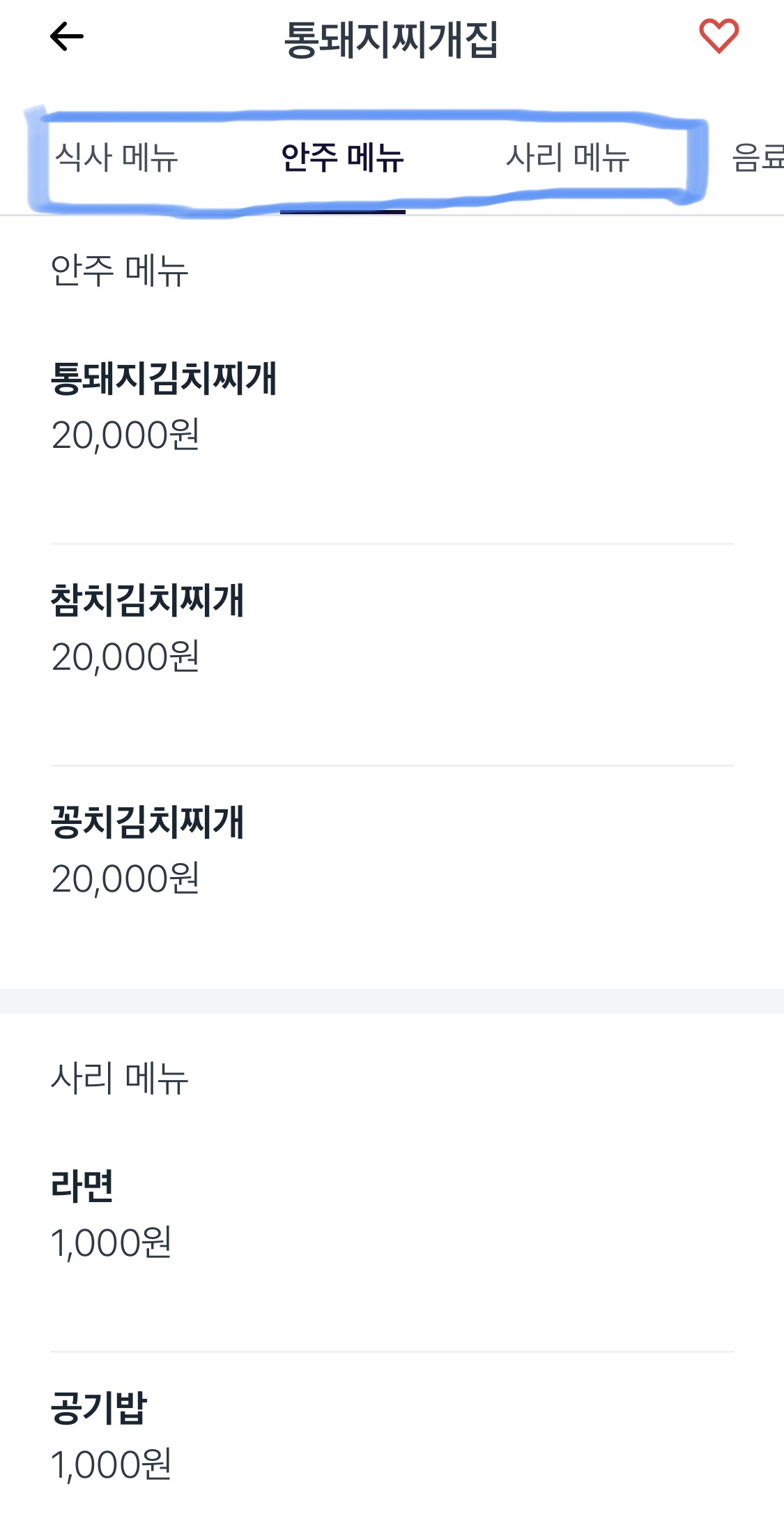 기존 배달 앱에서는 메뉴를 모두 보려면 스크롤을 무한정으로 내려야 했다. 메뉴가 몇 십개 씩 되는 매장은 먹고싶은 음식을 찾기에 시간이 오래 걸린다. 하지만 쿠팡이츠에서는 상단에 음식 카테고리별로 탭을 만들어 먹고싶은 음식의 카테고리만 누르면 그 곳에서 음식을 찾아 주문 할 수 있다.