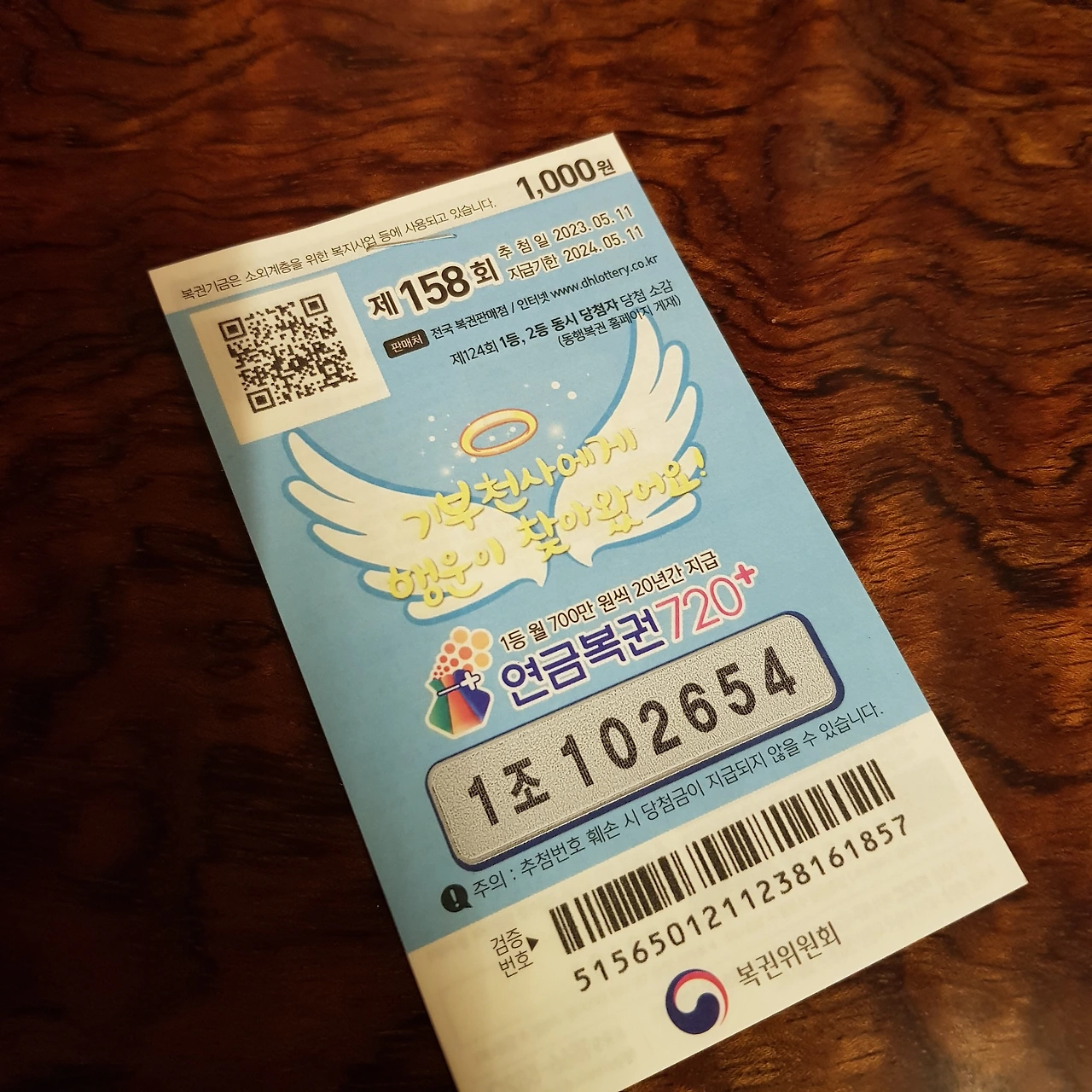 연금복권 5장이 5000원이 되서