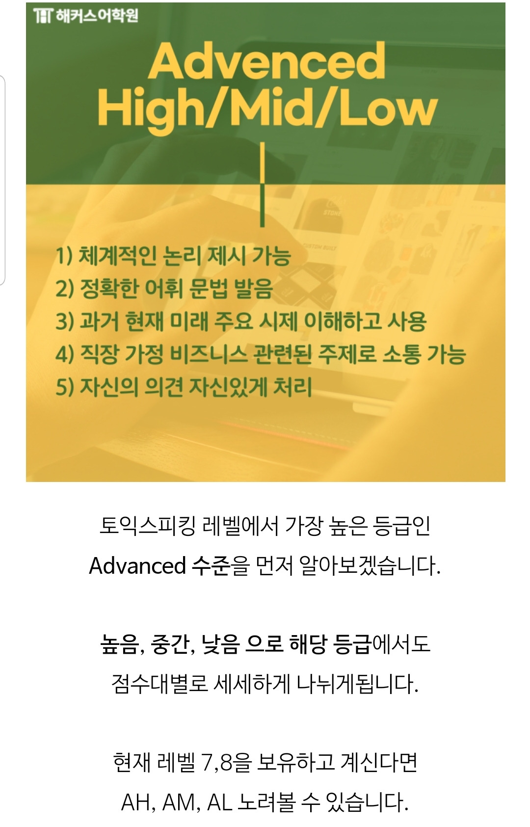 2달만에 토익스피킹 20점 올리기 성공!(140 >160 취득)