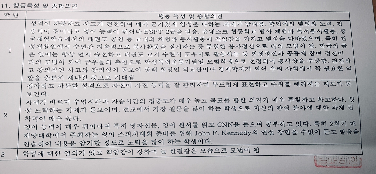 하지만 우연히 읽게 된 생활기록부에서
