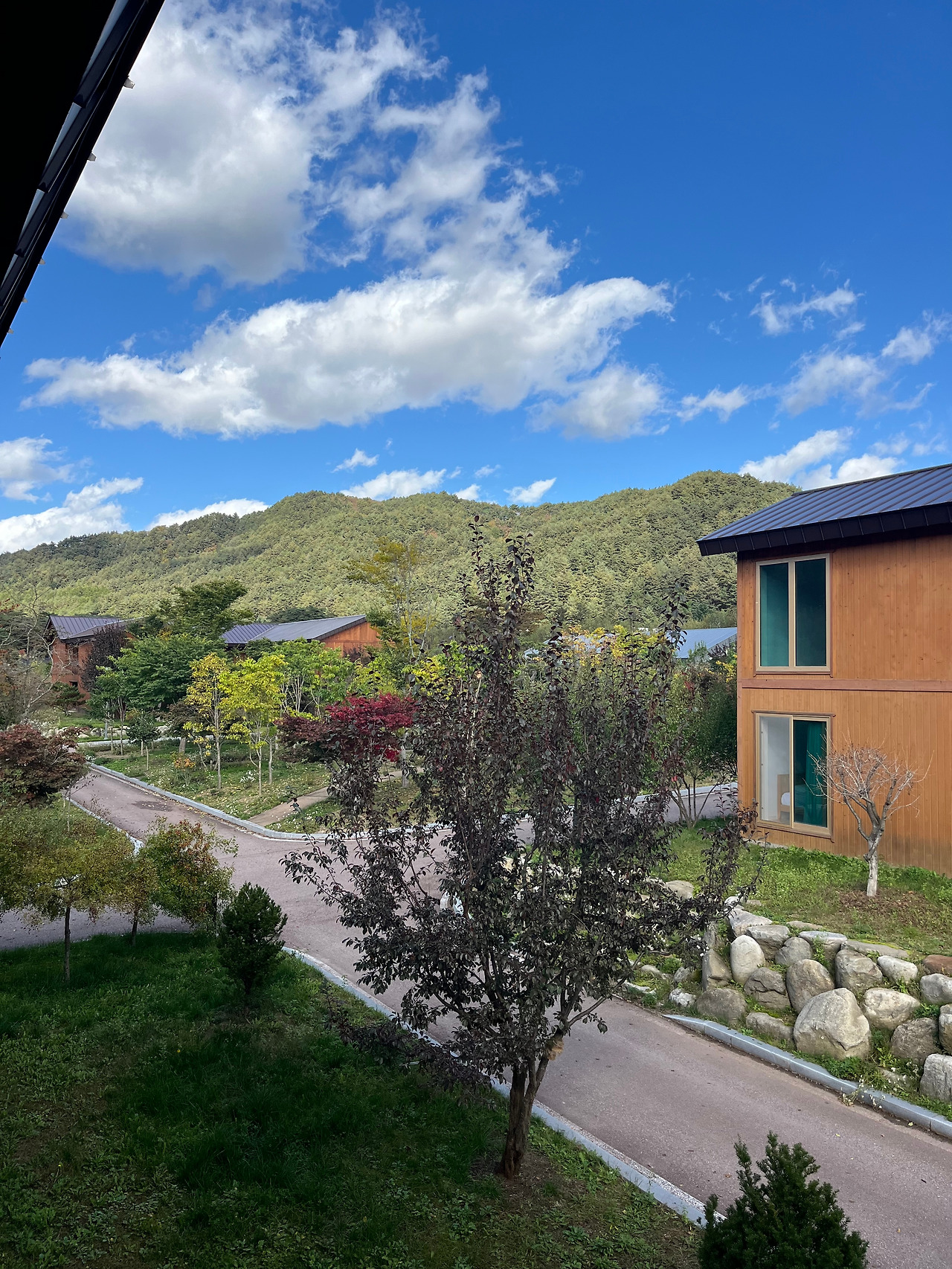 편백나무로 지어진 숙소가 보인다. '마을'이라는 이름에 걸맞게 부지가 엄청 넓었다. 숙소는 봄 여름 가을 겨울 총 네동으로, 예약시 따로 선택은 불가했다. 그와중에 가을이 제일 좋다는 리뷰를 본 나는 슬쩍 가을동을 배정 받길 기대해본다.