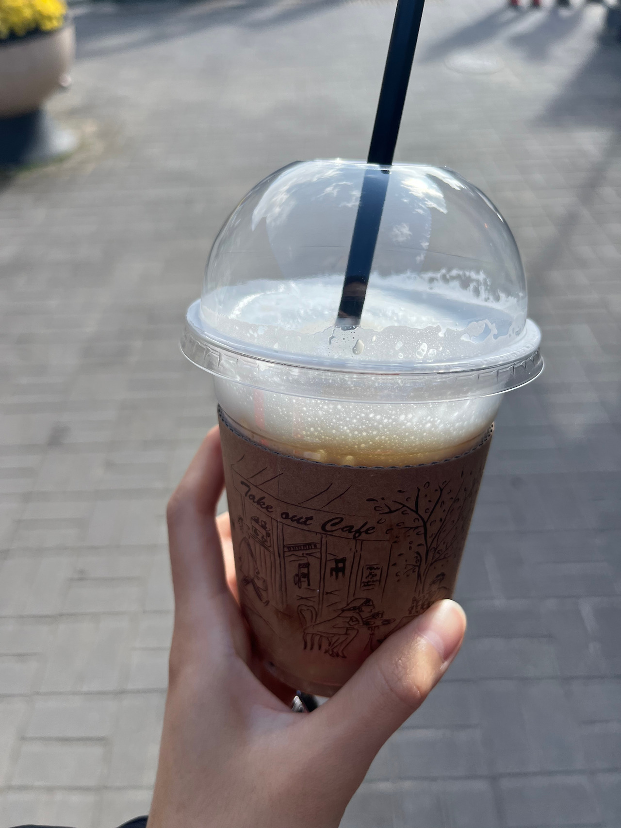 목도 축일겸 한 카페에 들어가 보지만, 시끄럽게 떠들고 있는 형광 나방들을 대적할 자신이 없어 얼른 주문을 해본다.