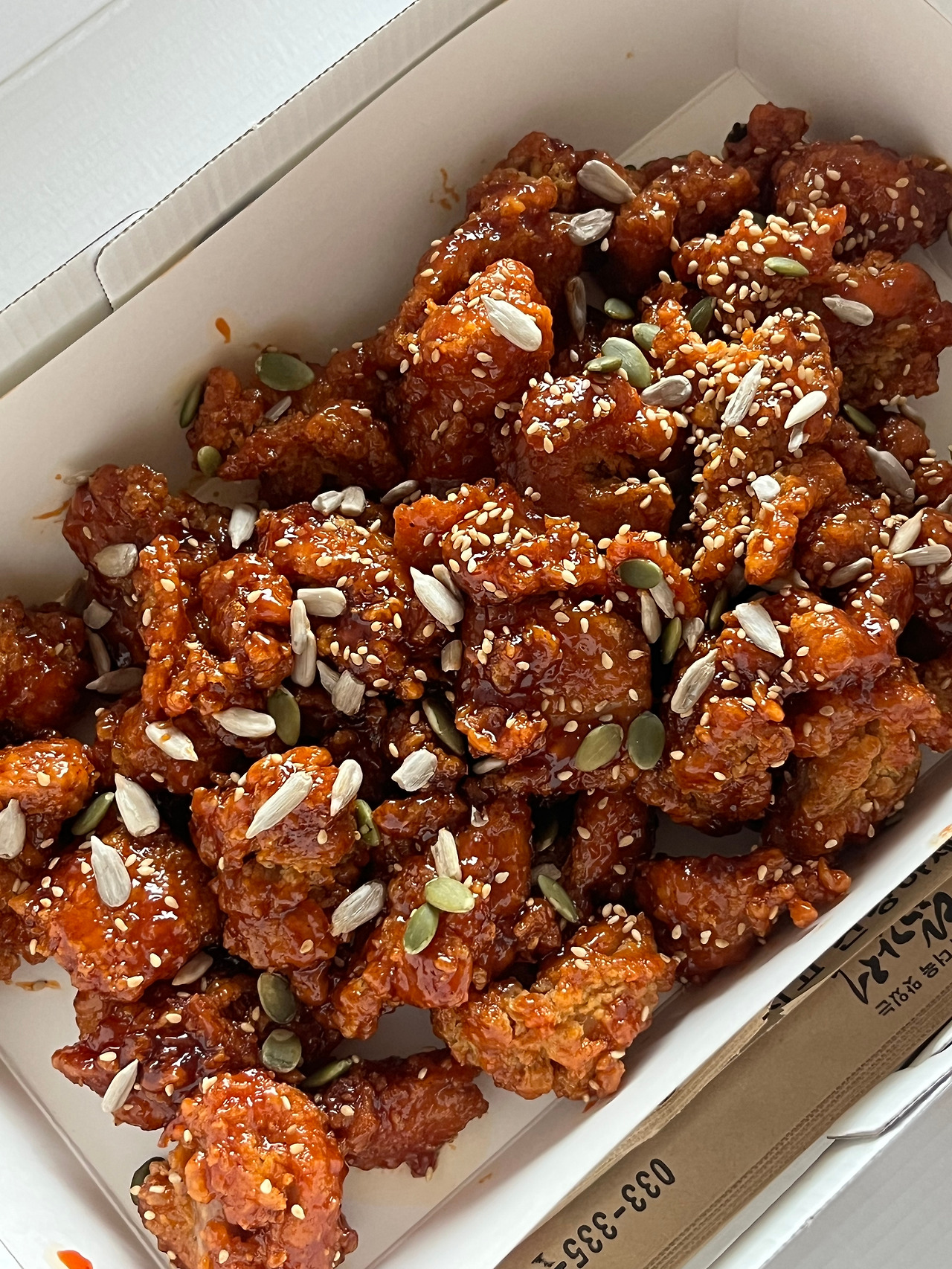 계속 주워먹은 닭강정 탓에 금방 배가 불렀다. 그래도 디톡스 주문을 걸며 꾸역꾸역 집어 넣어 본다.