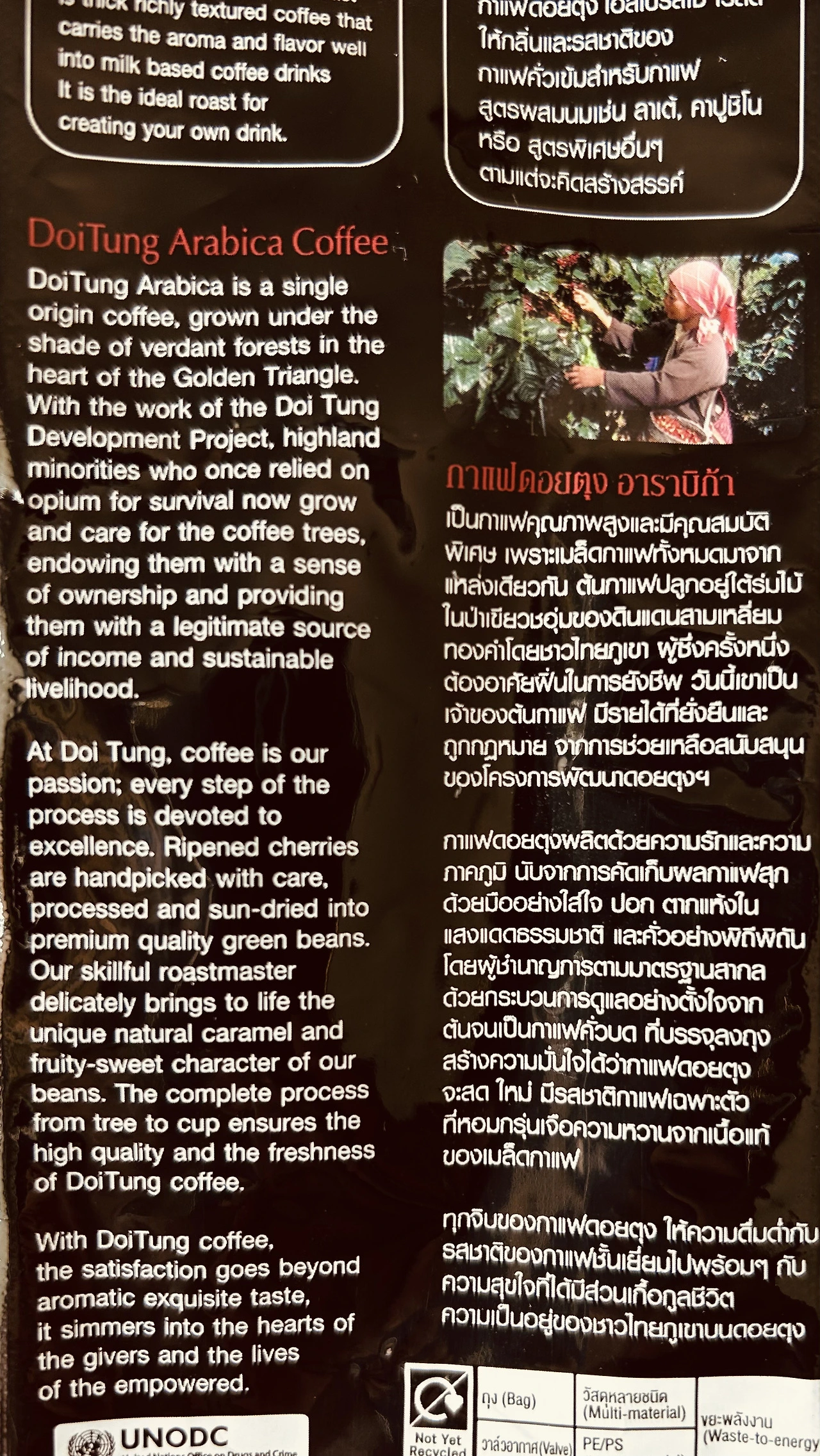 여기서 잠시, 도이 퉁 커피의 역사를 살펴볼 필요가 있다. 도이 퉁은 아편 문제에 직면했던 초기부터 '도이 퉁 개발 프로젝트'가 시작되었다. 이는 도이 퉁 커피 산지의 숲을 되살아나게 하였고 훌륭한 커피의 생산지로 면모 할 때까지 치앙라이 지방의 왕실은 지속 가능할 수 있는 커피 개발 지역에서 지역 사람들에게 끊임없이 일자리를 제공해 왔다. "숲은 사람과 함께 산다"라는 철학 아래 태국의 왕실과 재단은 큰 나무 그늘(Shade Tree) 이 있는 숲을 100% 아라비카만을 재배하는 농장으로 복원하고 삼림화 하였다. 그리하여 '도이 퉁 숲'은 지역사회의 농부들이 지속 가능하게 자립할 수 있도록 삶의 터전이 되었고 고품질의 커피 재배를 촉진하기 위한 프로젝트는 계속되었다.