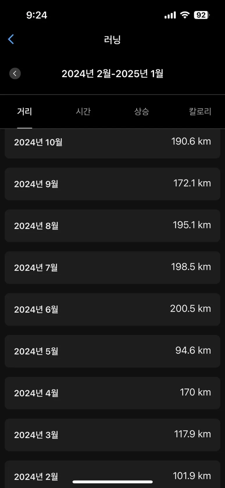 물론 월 94KM를 뛰었던 24년 5월처럼 부상으로 인해 마일리지가 낮았던 달도 있긴 하지만,