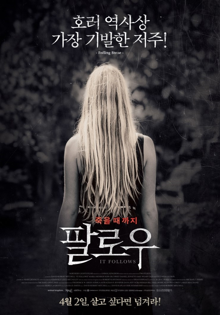 이번에 우연치 않은 기회로 보게 된 [팔로우]라는 영화는 앞의 사례로 비교를 하자면 전자의 경우가 될 것이다. 영화가 청소년 관람 불가 등급을 받긴 했으나 심하게 끔찍한 장면이 등장해서, 혹은 영화가 유혈이 낭자한 연출을 선보이기 때문은 아니다. 이 영화는 전반적으로 관객들의 심리를 자극하며 극이 진행된다. 오프닝 신부터 시작해 엔딩크레딧이 올라갈 때까지 영화는 한시도 쉬지 않고 관객들의 심리를 옭아맨다. 이 영화에 전반적으로 깔리는 신디사이저 소리는 분명 안심할만한 상황인 것 같은 분위기에서도 갑작스레 귓가를 맴돌며 기묘한 분위기를 연출해 낸다. 사실 이 영화에서 많은 이들이 큰 호평을 한 부분이 바로 이 사운드 부분이다. FEZ라는 퍼즐 게임에서 느낌이 온 감독은 해당 게임의 사운드 트랙을 만든 음향 감독을 찾아가 [팔로우]의 음향을 맡아 달라고 부탁했다고 하는데 영화 내내 귀에 거슬리는 이 사운드트랙은 영화의 몰입도와 공포감을 배가시키는 좋은 선택이 아니었나 싶다.