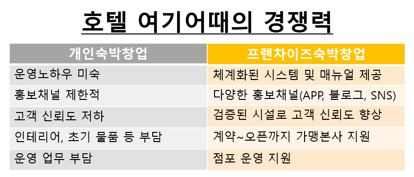 그렇다면 호텔 여기어때는 개인 숙박창업에 비해 어떤 경쟁력을 지니기에 이들을 설득할 수 있을까요.